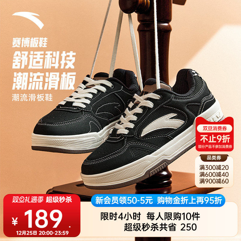 【王一博同款】安踏赛博丨经典低帮黑白板鞋女鞋百搭小白鞋运动鞋