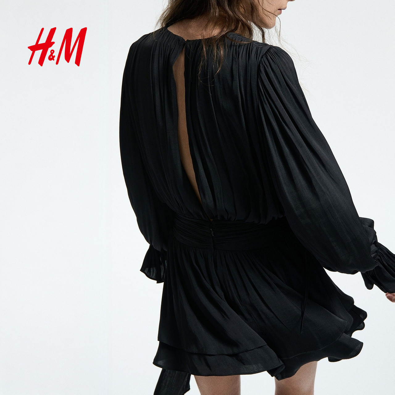 iqcq气球熊时尚辣妹套装秋季抹胸连衣裙女收腰一字肩黑色蓬蓬裙子