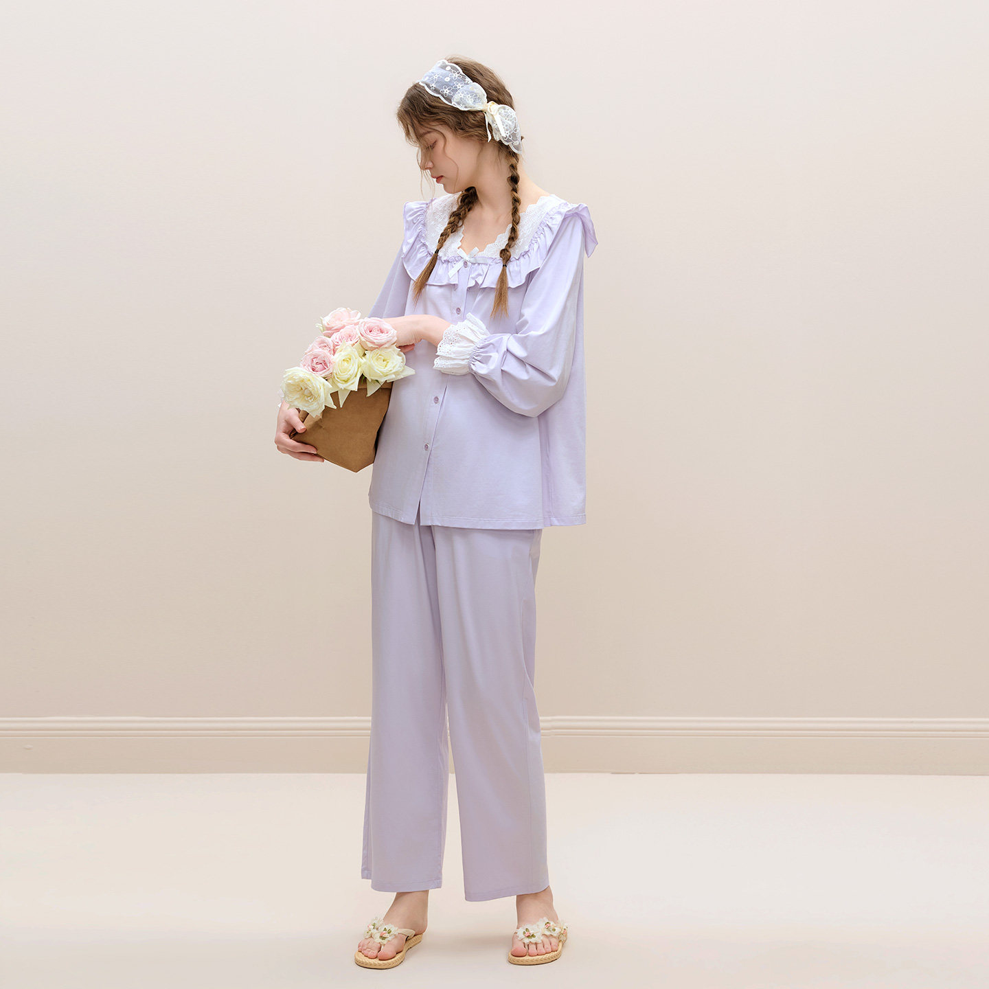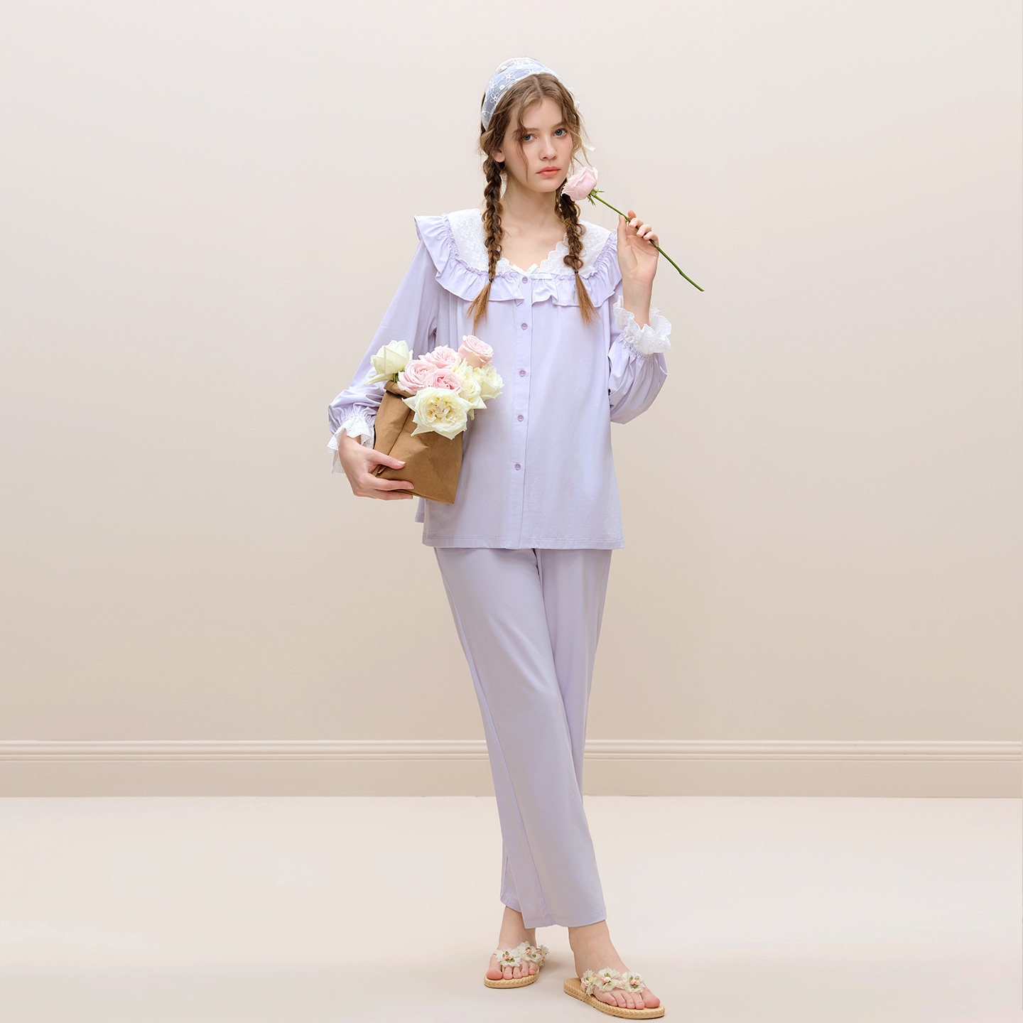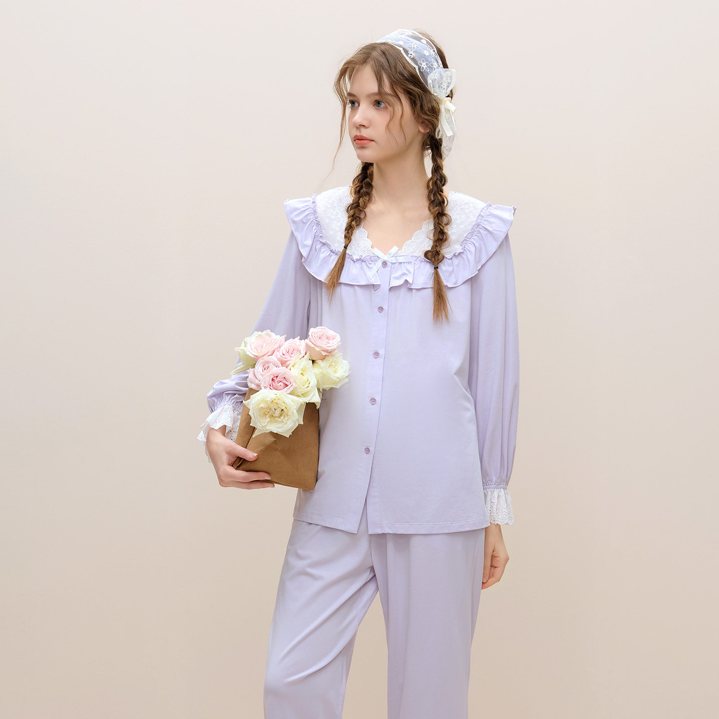 美标2026春夏新品长袖莫代尔棉质睡衣套装女宫廷风蕾丝甜美家居服