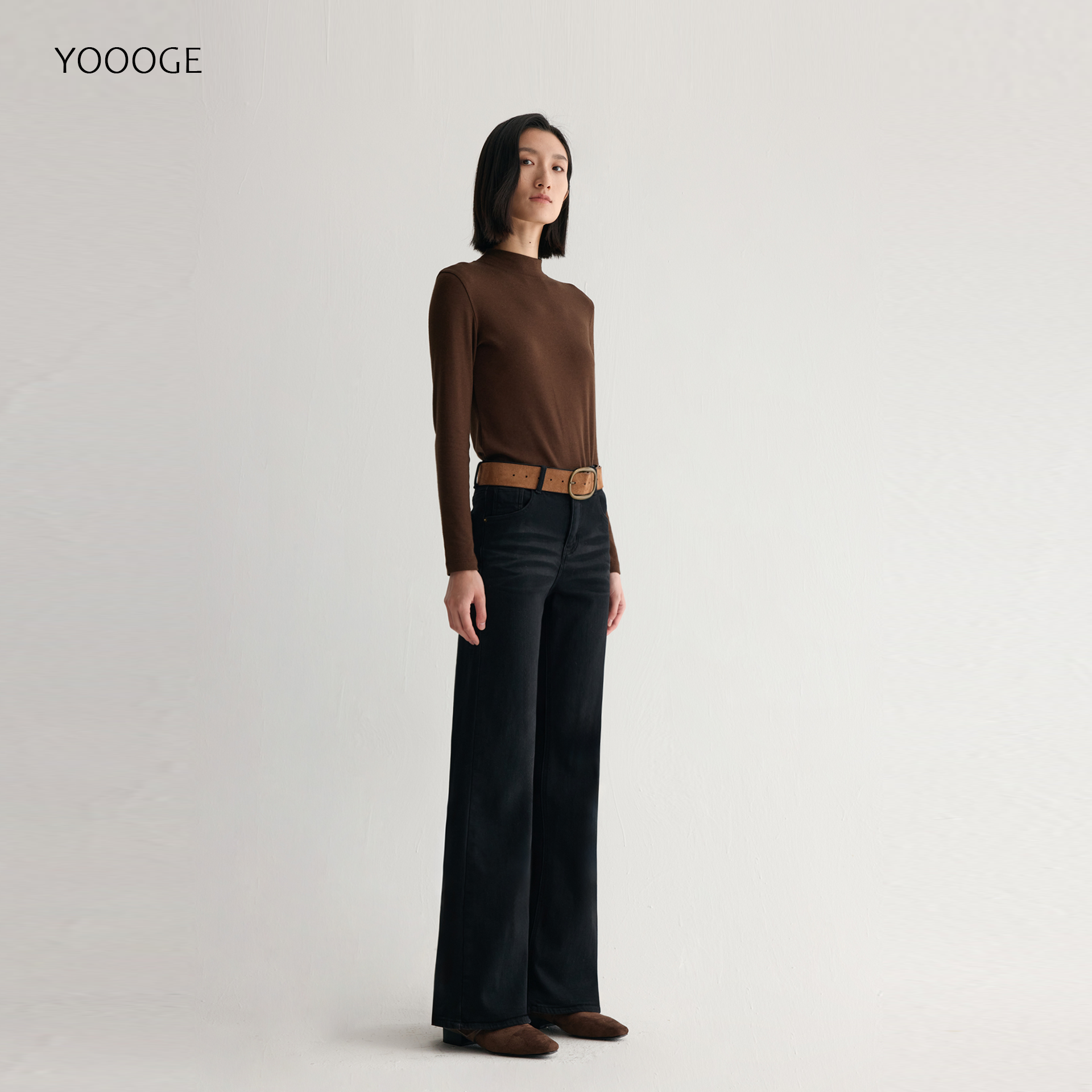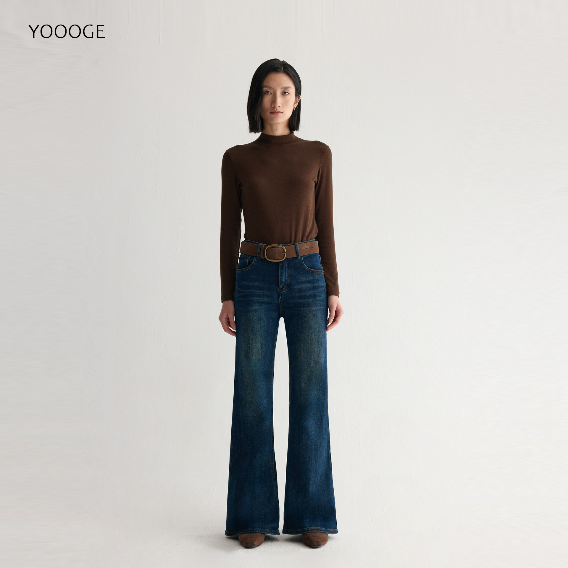 森柔|森马牛仔裤女冬季加绒保暖宽松喇叭裤弹力长裤2025新款港风