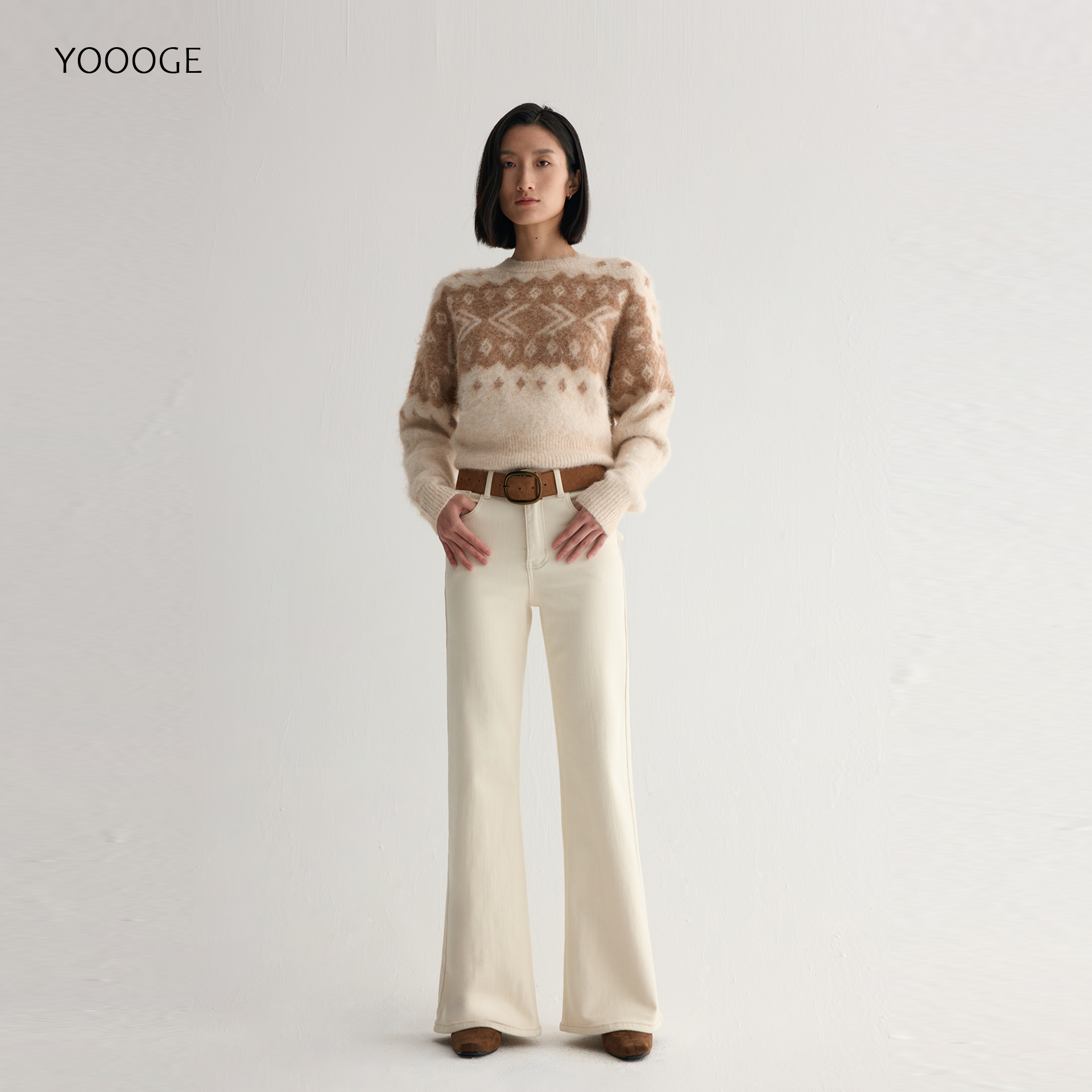 右格Jeans 【摩登裤】四面弹微喇裤加绒牛仔裤女休闲刺绣筒喇裤