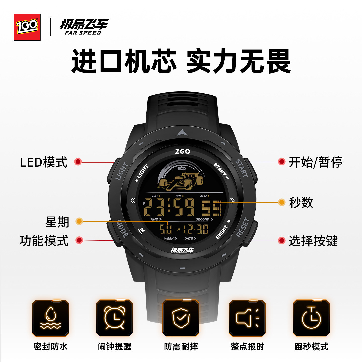 正港ZGO极 品飞车运动手表男生儿童学生初高中跑步夜光防水电子表