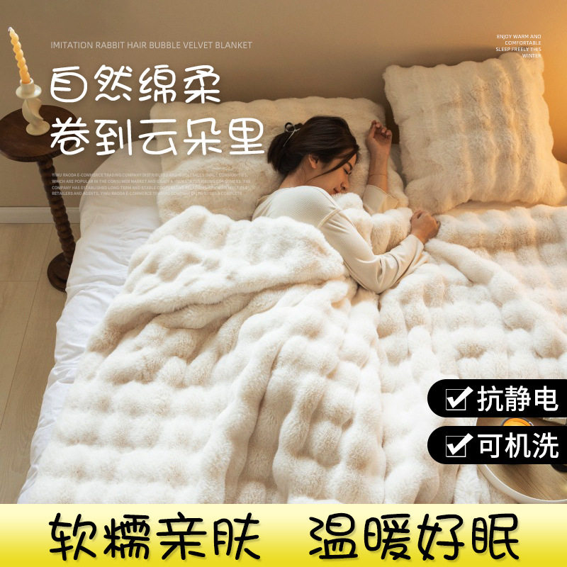 托斯卡纳ins风泡泡绒毛毯仿兔毛毯子加厚纯色双面盖毯礼品装饰毯