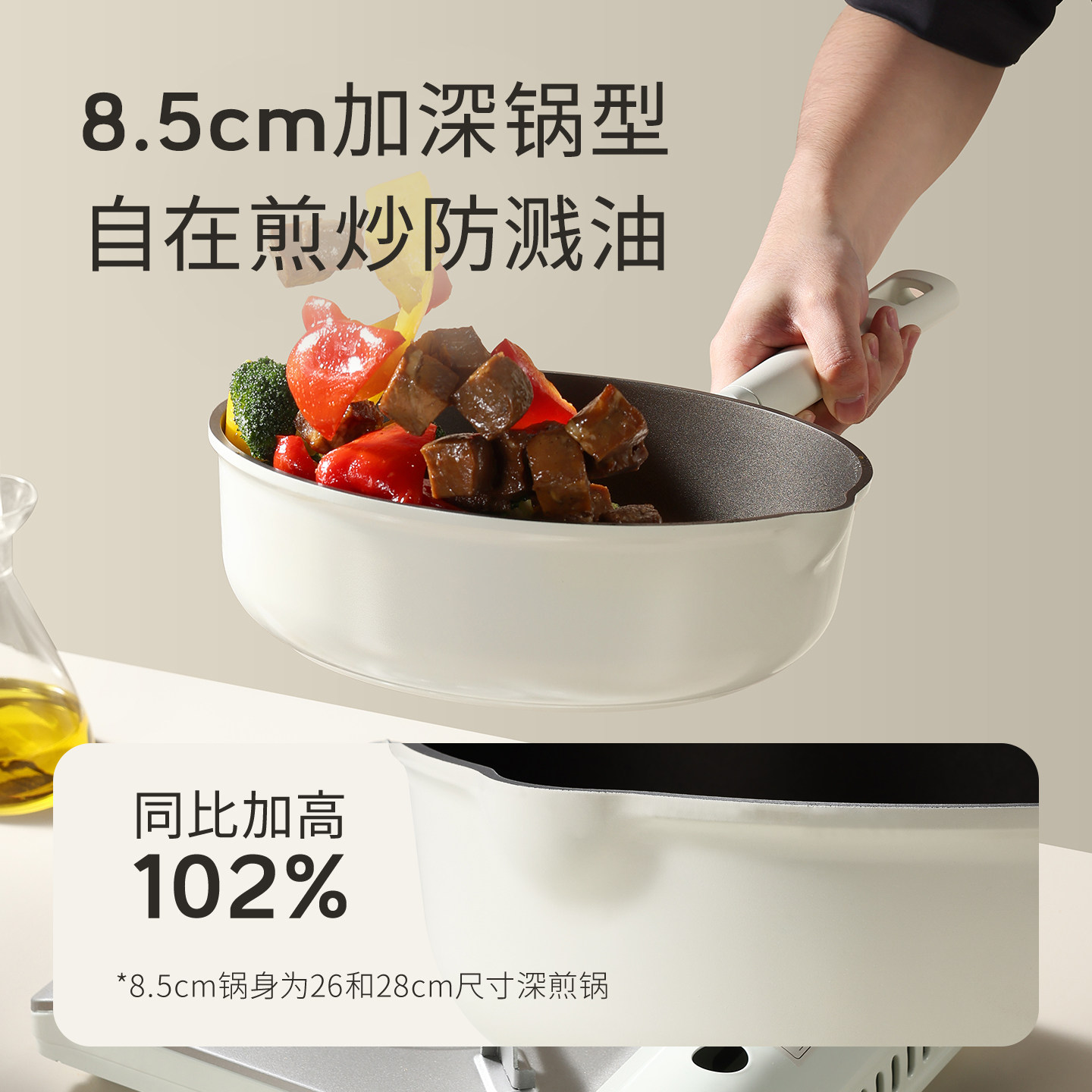 北鼎26cm不粘锅平底锅煎锅家用煎饼牛排锅油炸锅炒菜锅电磁炉专用