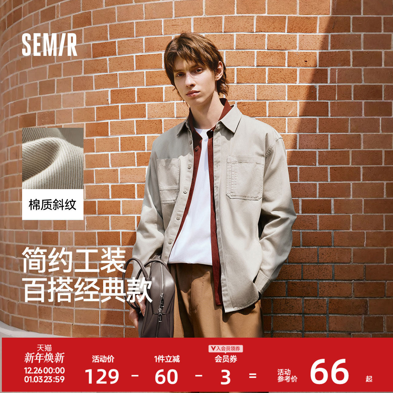 森马纯棉工装长袖衬衫男2025秋款百搭上衣时尚宽松外套男女同款