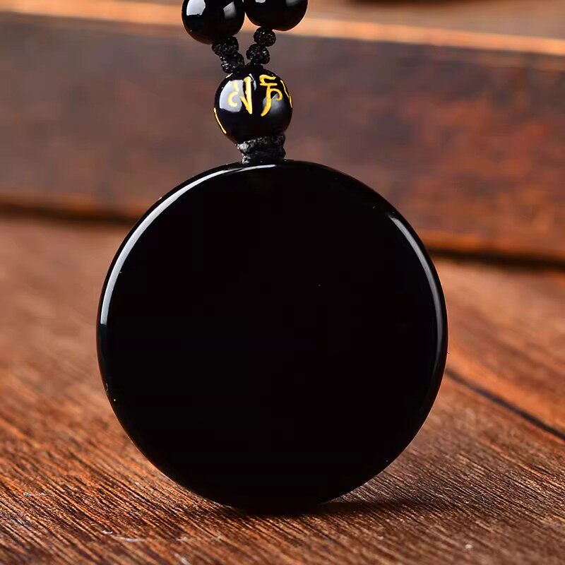 普陀山黑曜石无事牌吊坠女天然护身符项链平安符送男朋友的礼物