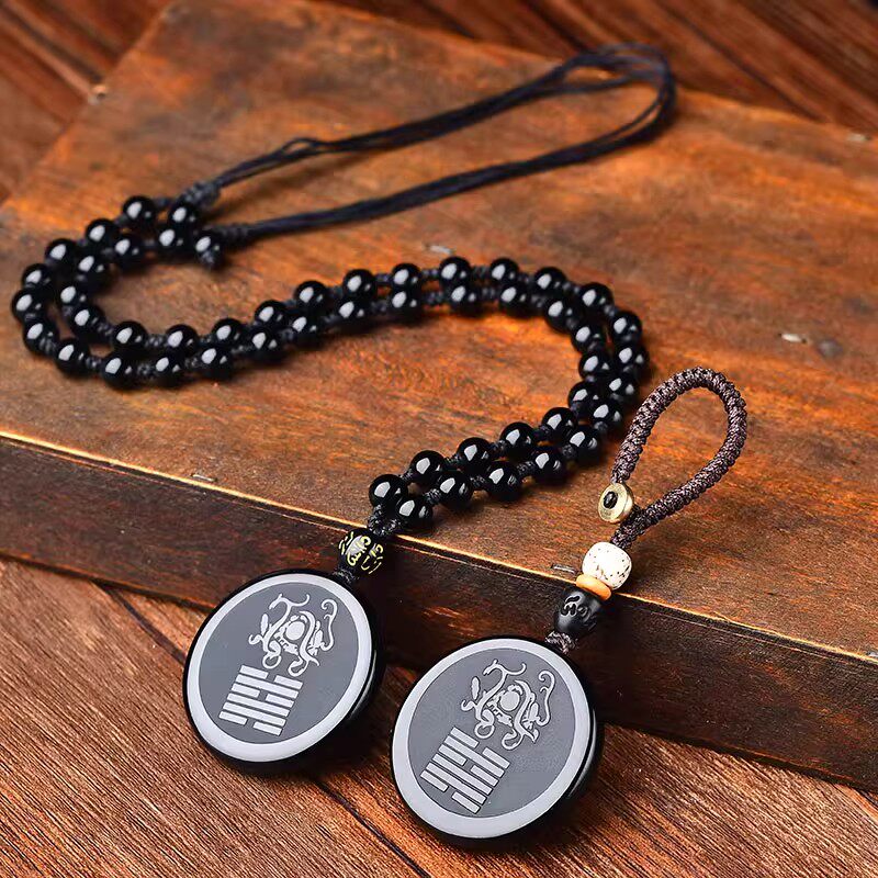 五行属水的饰品缺水补水玄武吊坠黑曜石水泽节水凤井卦钥匙扣挂件