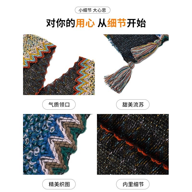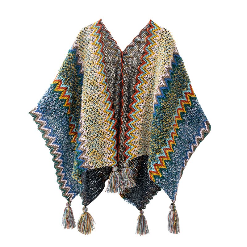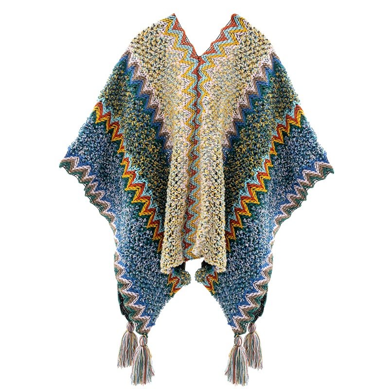 云南丽江民族风蓝色旅游披肩女外搭氛围感时尚披风斗篷针织围巾女