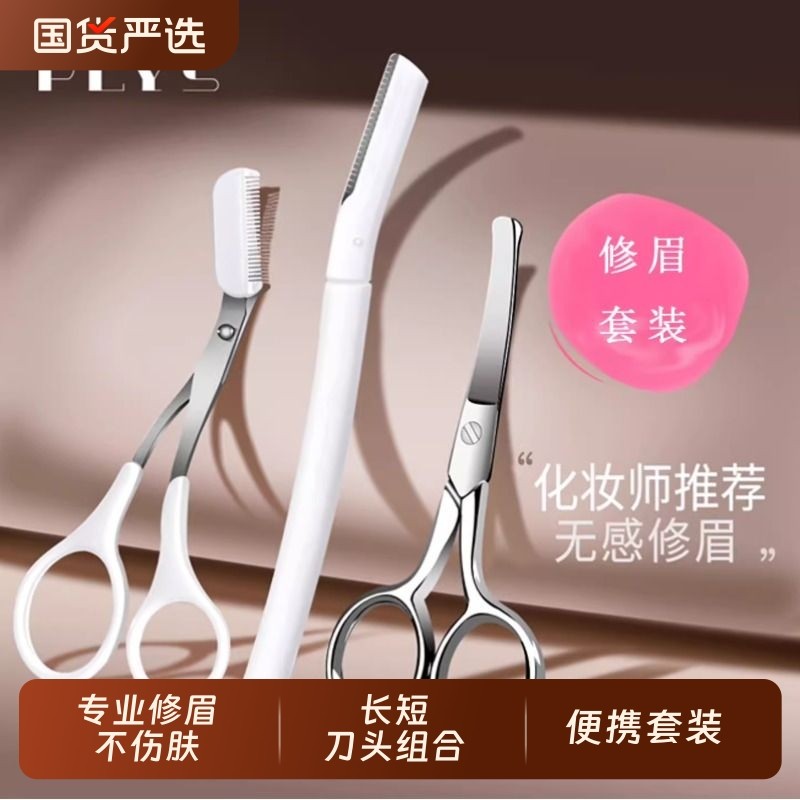 修眉毛剪刀女士专用眉剪带眉梳子修剪器男剃眉刀套装工具神器安全