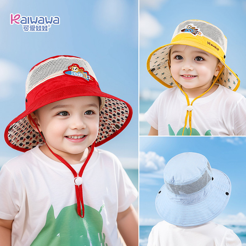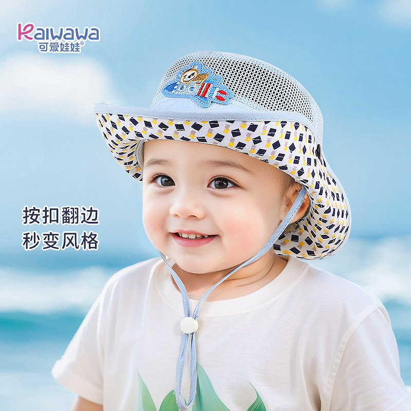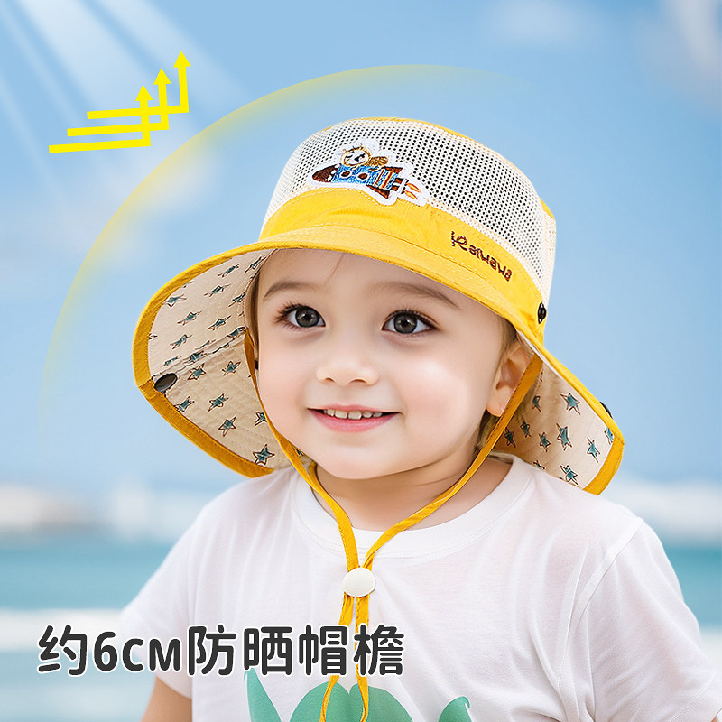 儿童防晒帽宝宝遮阳帽防紫外线男孩女童太阳帽大帽檐夏季渔夫帽子