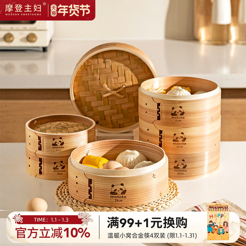 摩登主妇mototo竹制蒸笼家用食品级包子馒头小笼包蒸锅蒸屉小蒸格