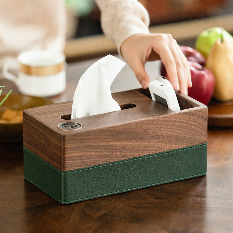 胡桃木纸巾盒家用客厅餐桌茶几卧室轻奢手机支架餐巾纸抽纸收纳盒