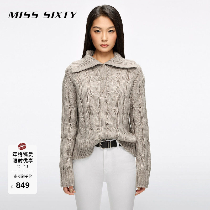 Miss Sixty25冬新款针织衫女polo领羊毛棉混纺长袖短款毛衣