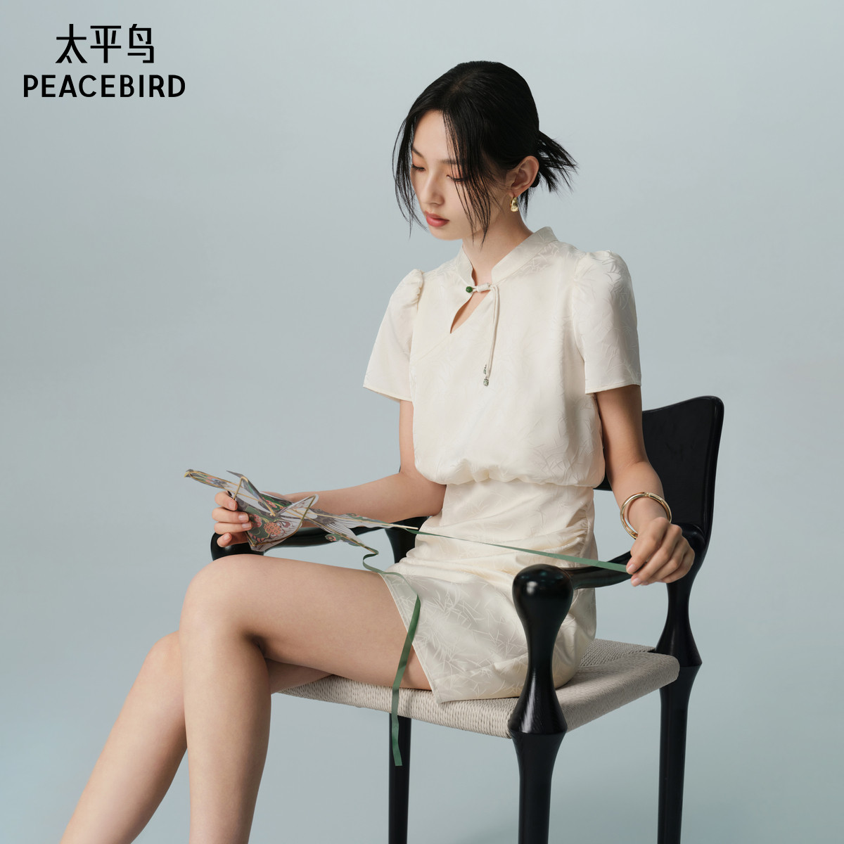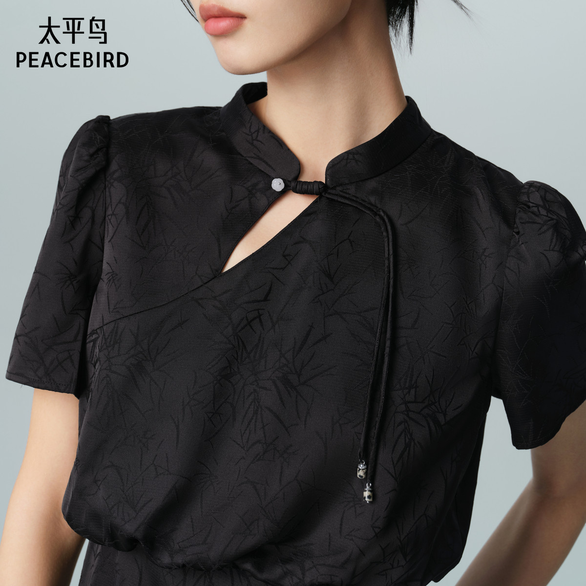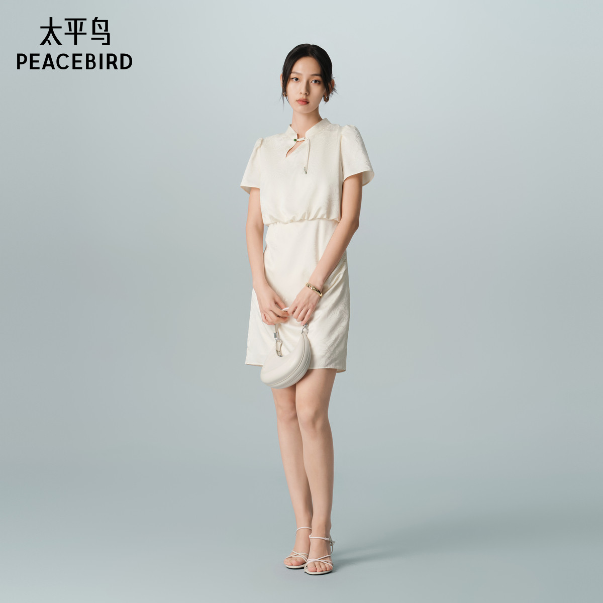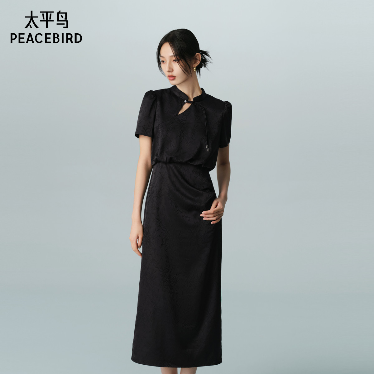 太平鸟女装新中式缎面提花连衣裙2025夏新款小众盘扣收腰显瘦短裙