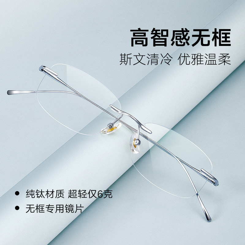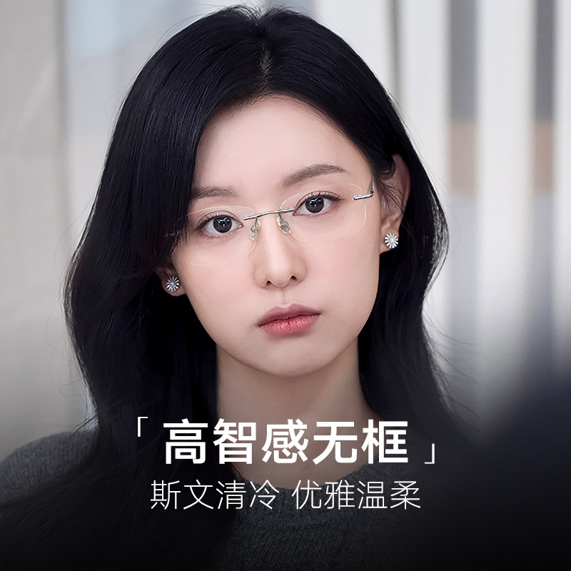 目戏无框眼镜女近视可配度数可选蔡司镜片无边框眼镜框镜架23006