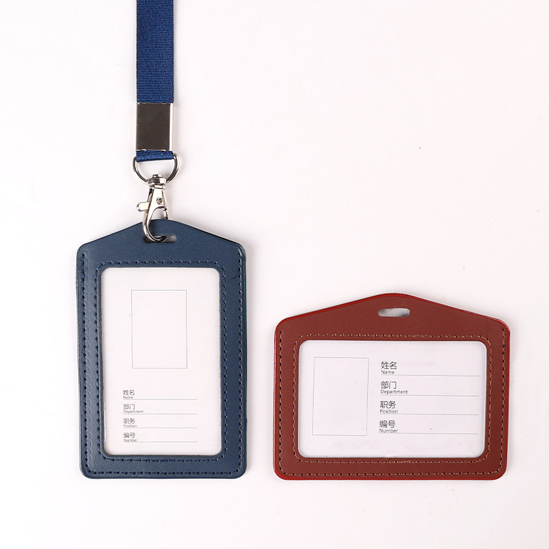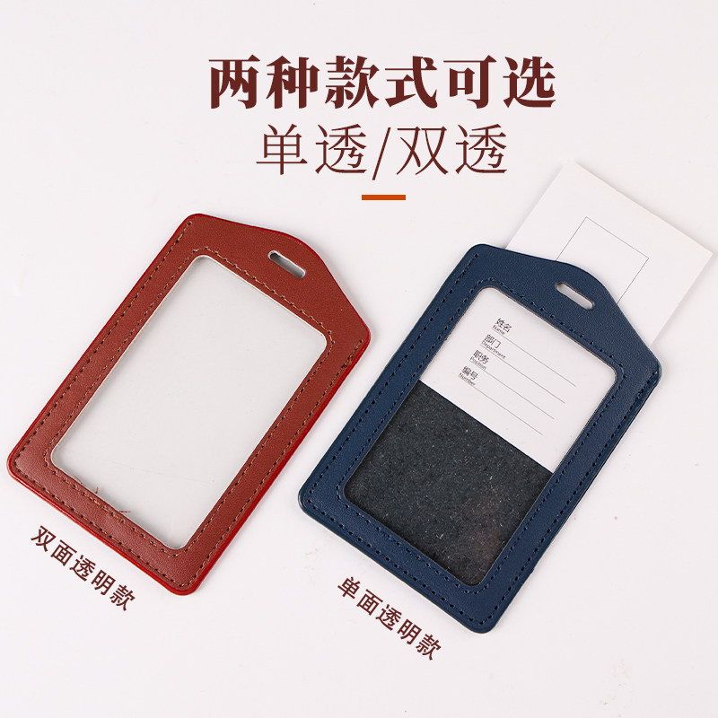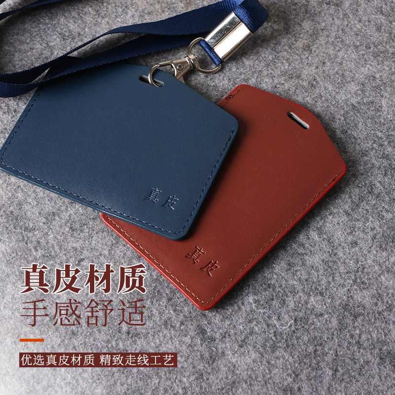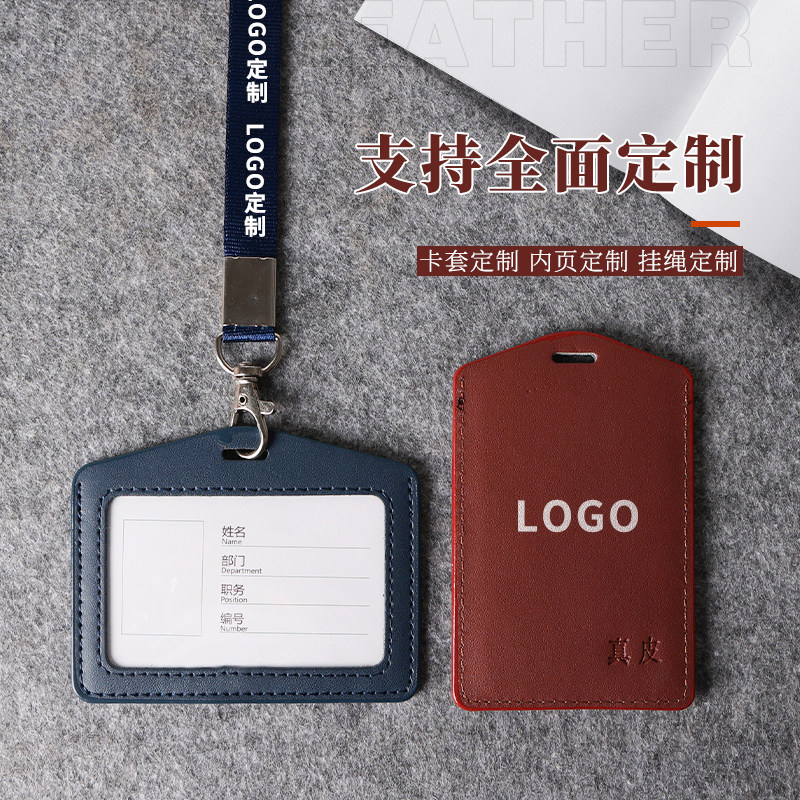 真皮卡套普通商务工作证件员工牌厂牌带挂绳吊牌胸牌卡保护套挂脖校园学生卡饭卡公交通门禁卡套单透明可定制