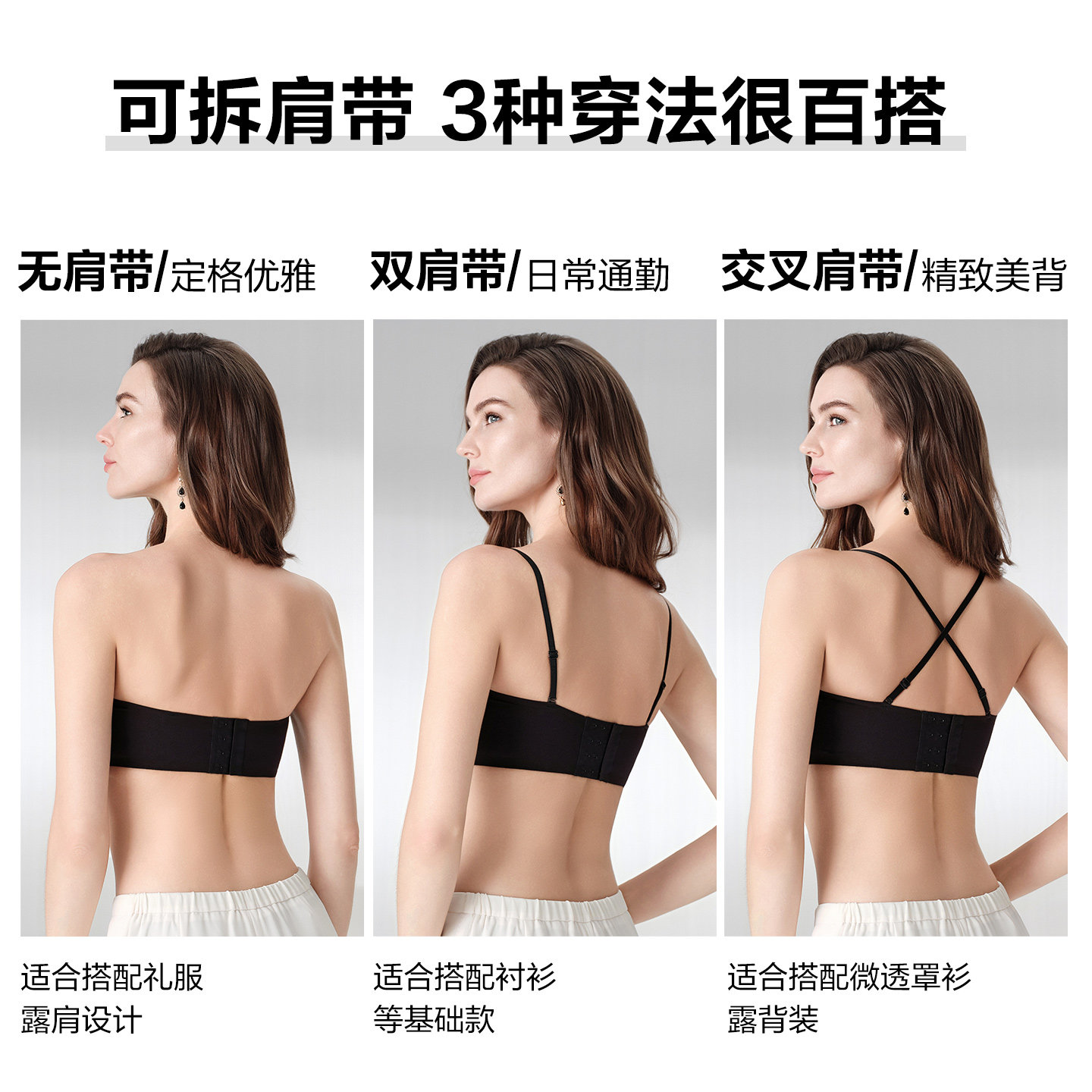 【可拆卸细肩带】安莉芳防滑抹胸美背薄款小胸聚拢内衣粉底液胸罩