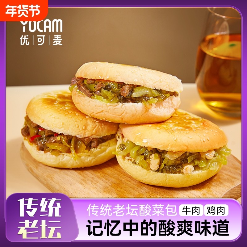 新品优可麦速食汉堡老坛酸菜加热即食面包牛肉鸡肉香辣堡微波早餐