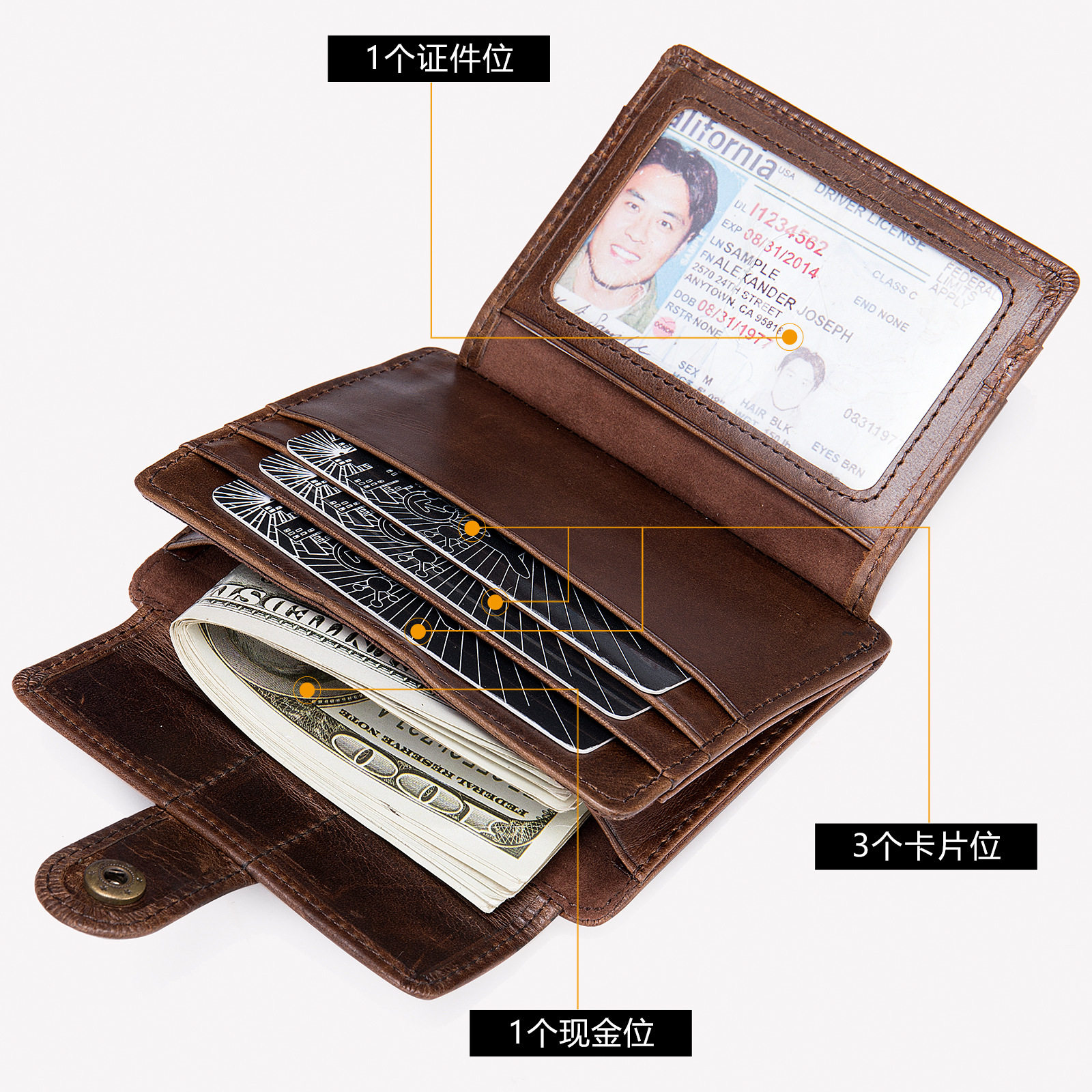 【真皮】皮尔卡丹男士钱包真皮短款送男友老公礼物牛皮驾驶证皮夹