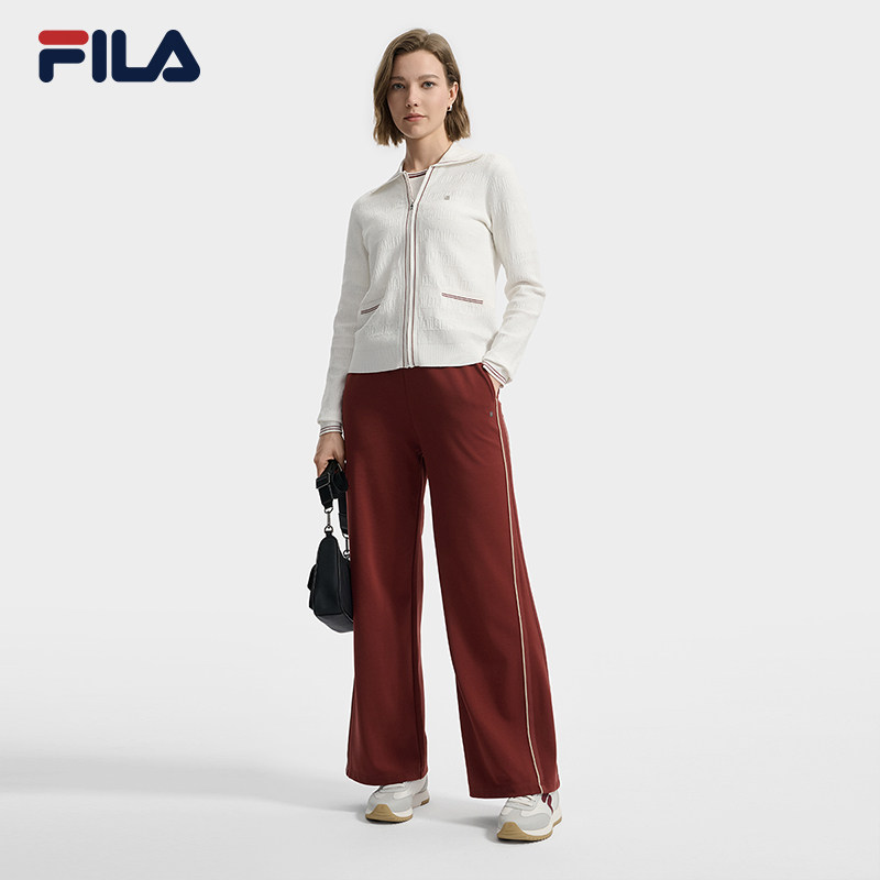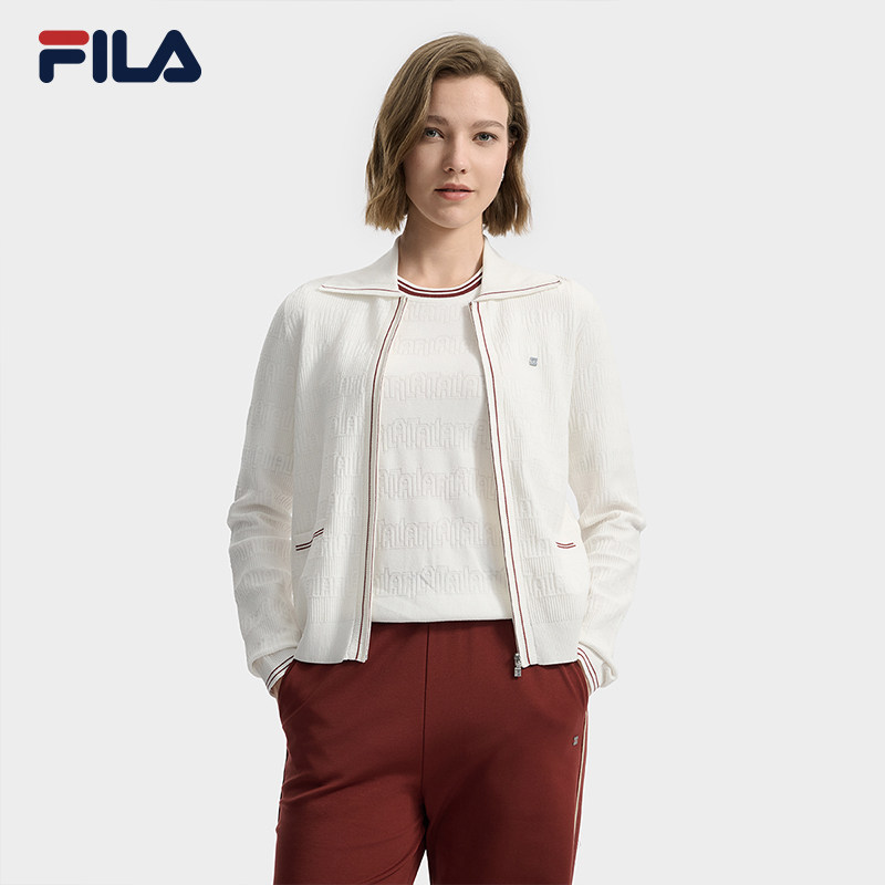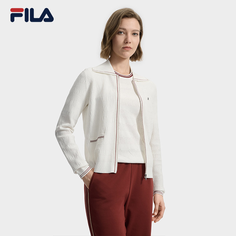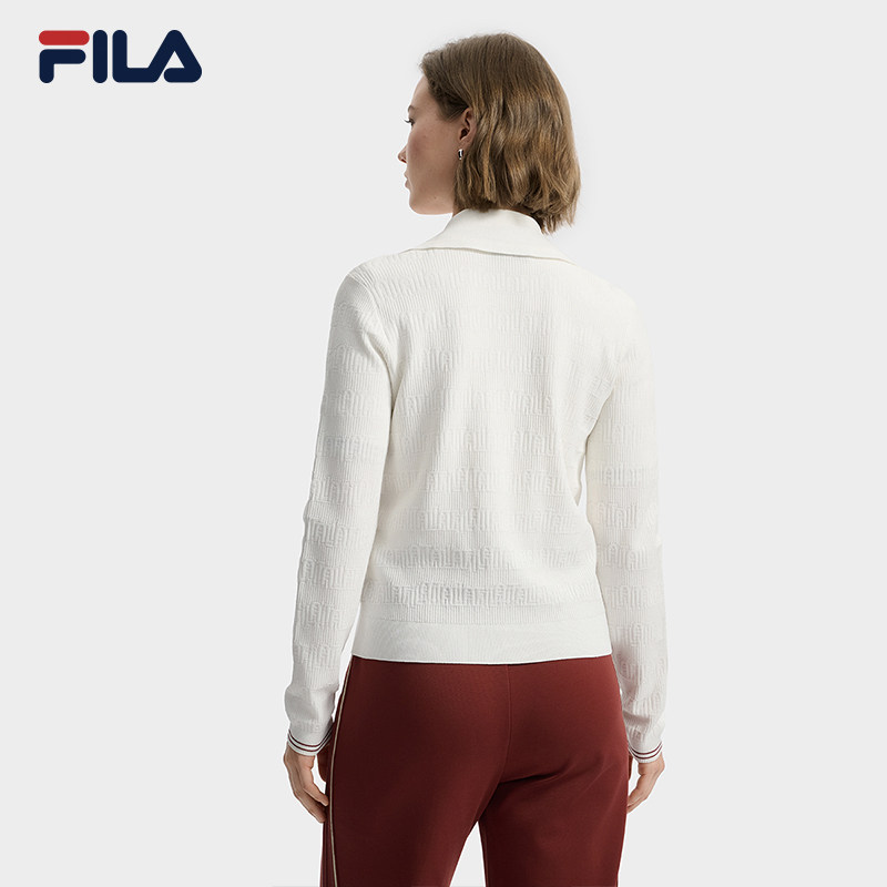 FILA 斐乐官方编织衫外套秋季新款时尚基础休闲翻领毛衣长袖上衣