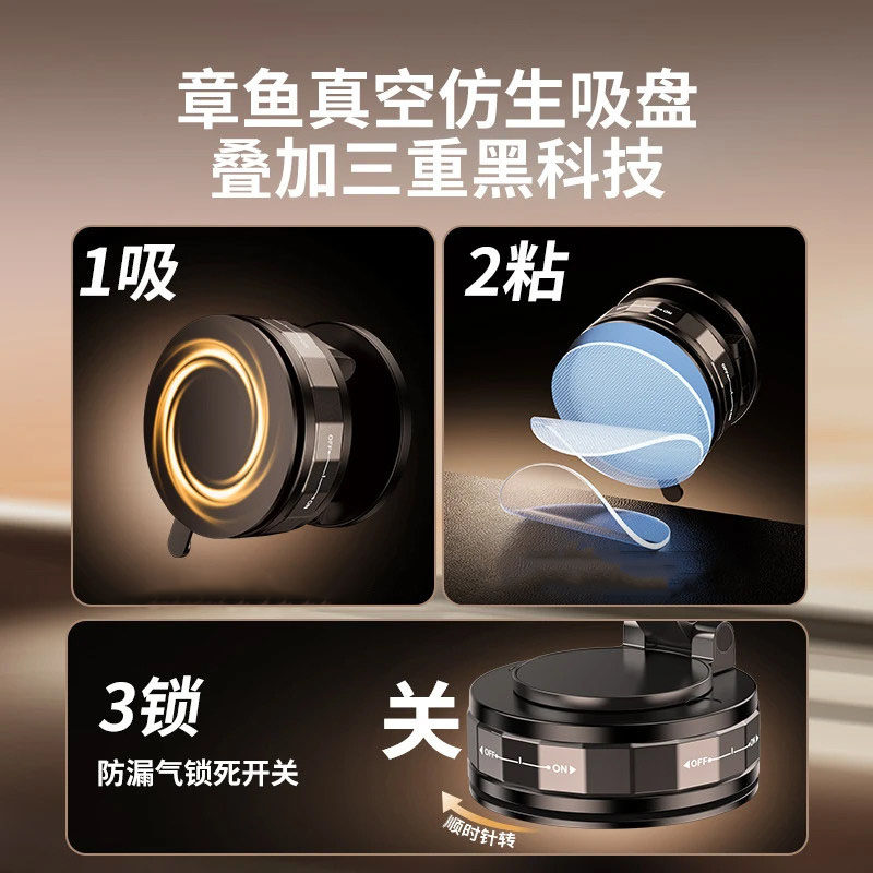 新款磁吸手机支架车载真空吸盘底座汽车直播拍摄导航支架中控吸附