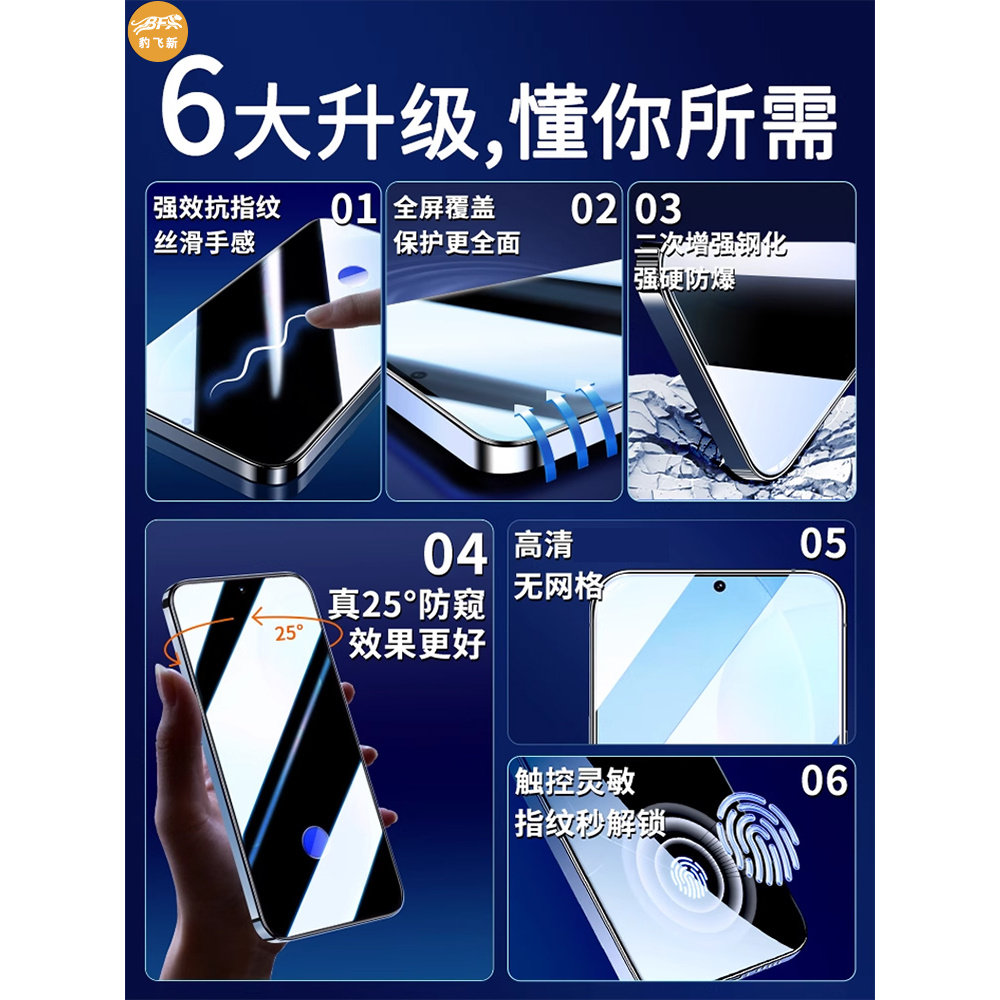 [不沾指纹]适用iPhone17/16钢化膜苹果15/14手机13promax防窥12全屏XR/xsmax全包11贴X防摔8por高清plus