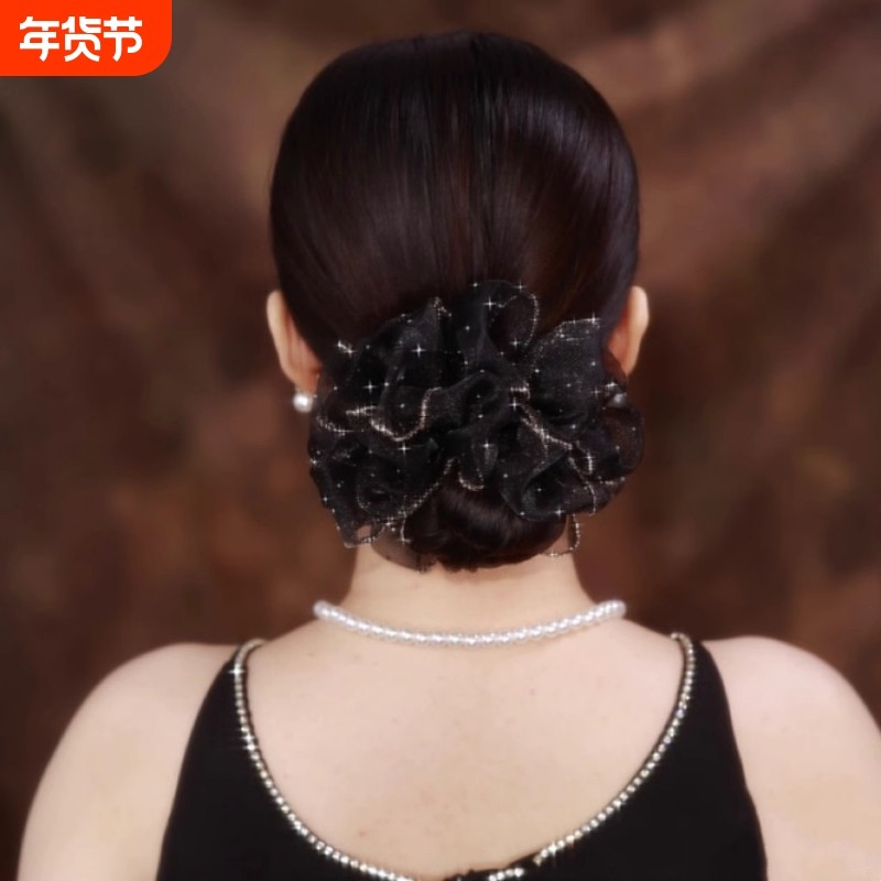 优雅气质满天星发饰头花欧根纱大肠发圈高级感发绳盘发丸子头头饰