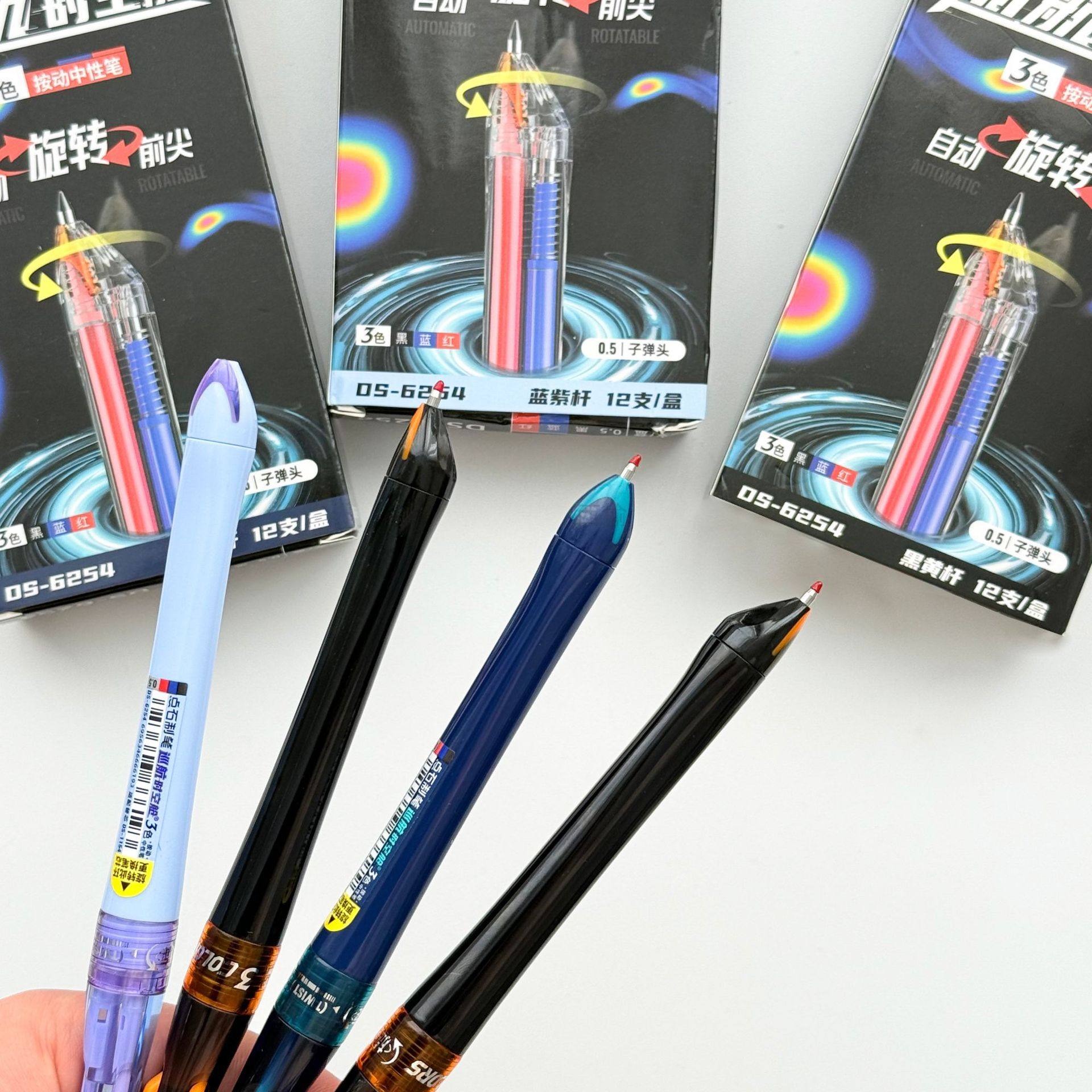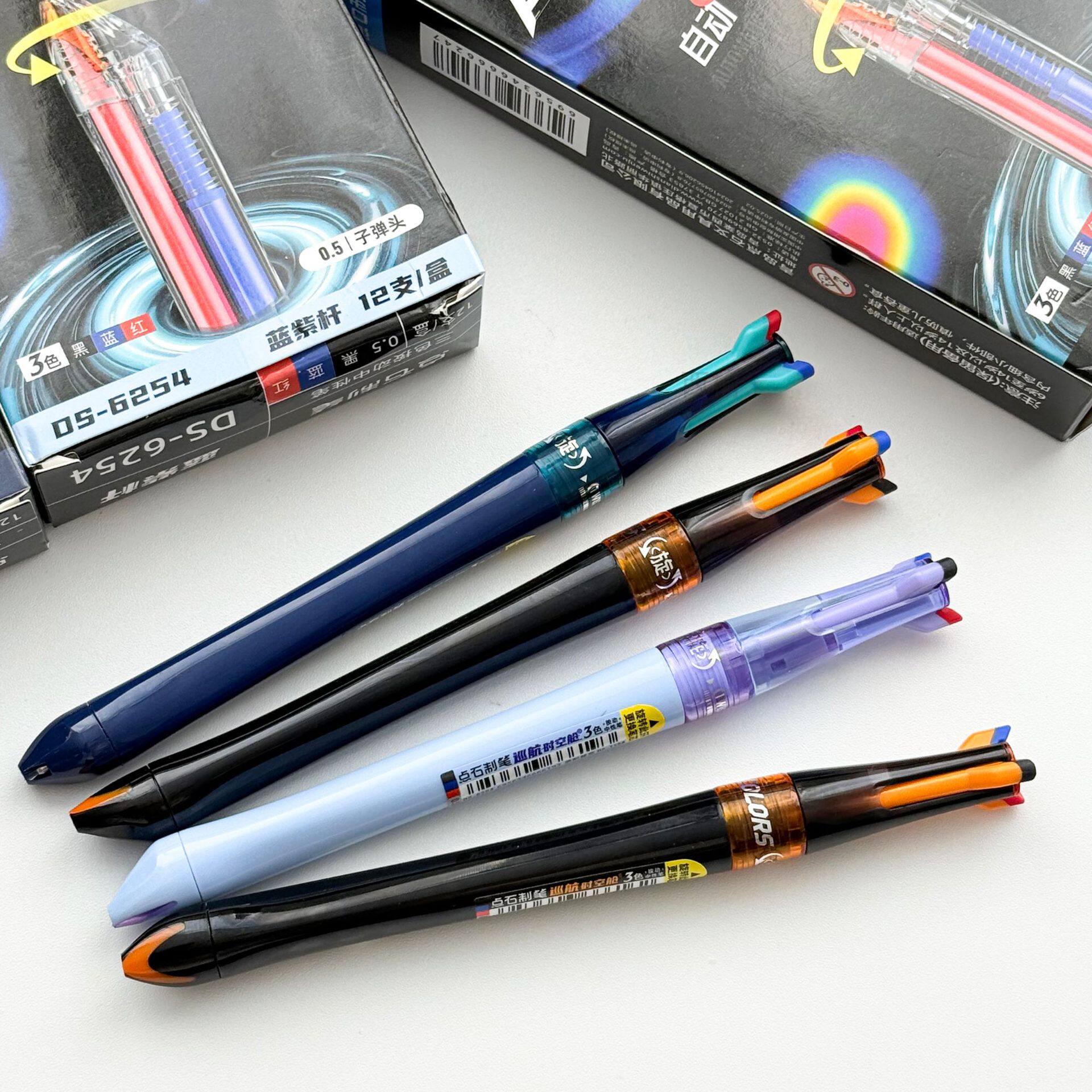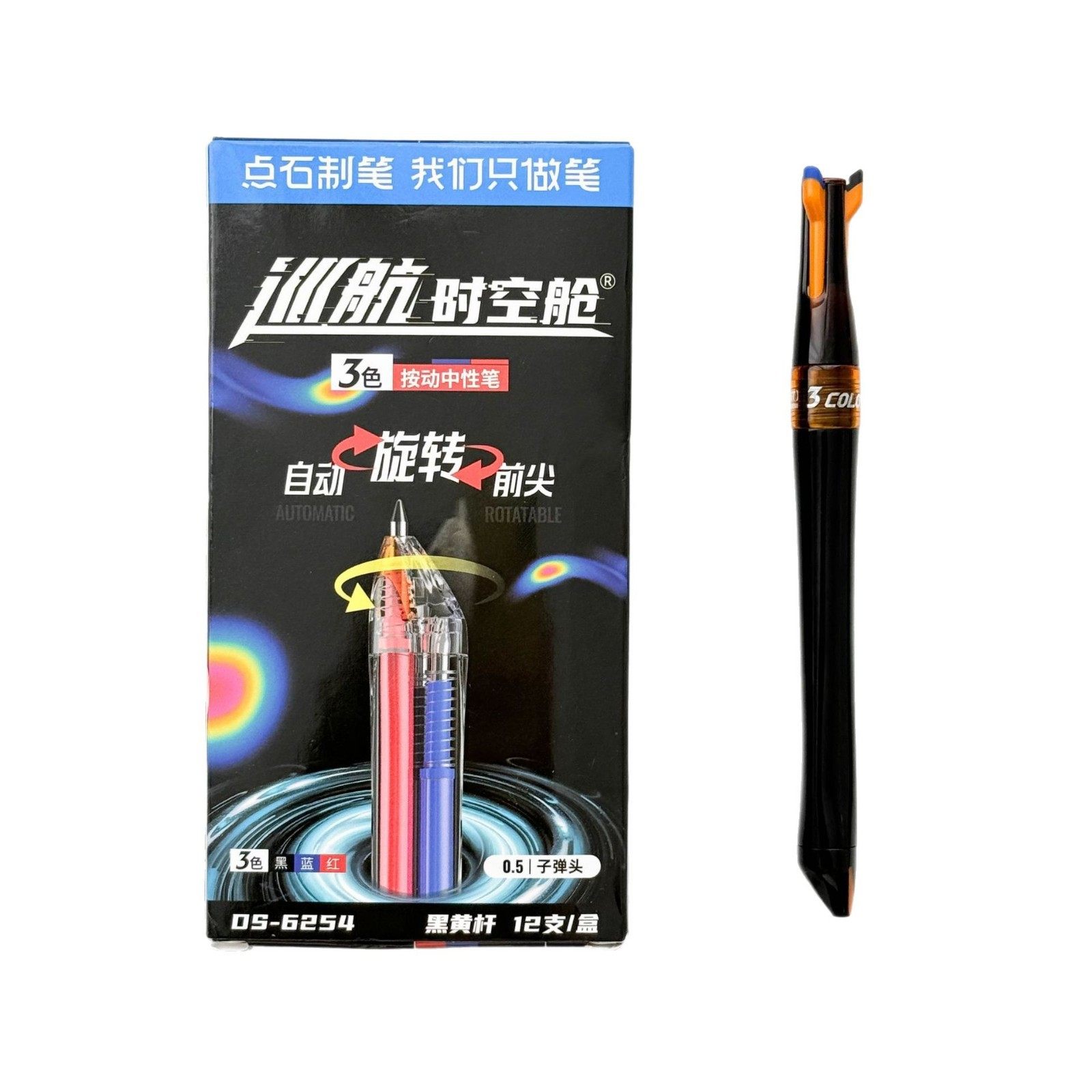 点石6254巡航时空舱3色按动自动旋转笔尖0.5子弹头中性笔办公刷题
