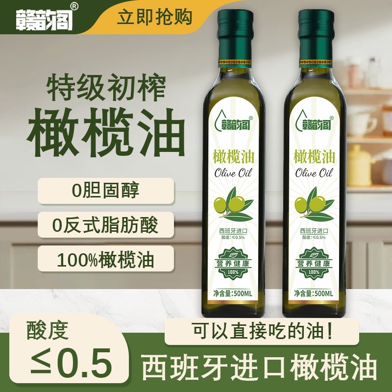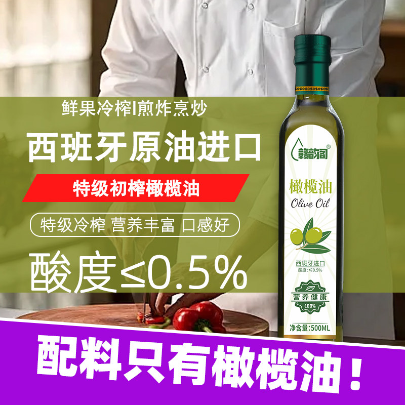 纯橄榄油500ml特级初榨正品西班牙进口纯橄榄油家用食用油可生喝