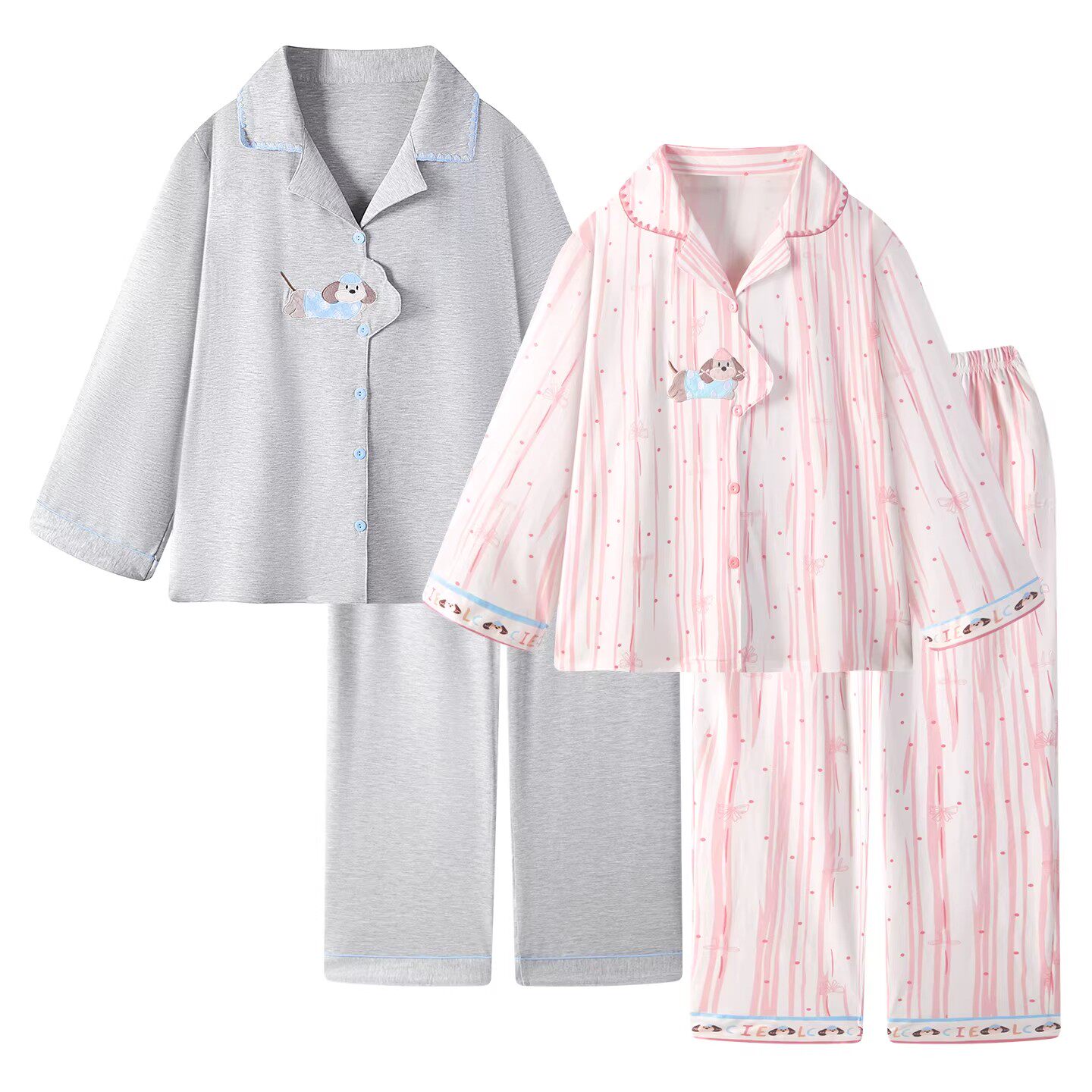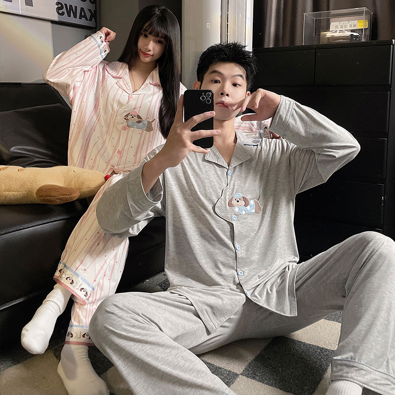 可爱小狗情侣纯棉睡衣女款春夏季2026新款长袖男士全棉家居服套装