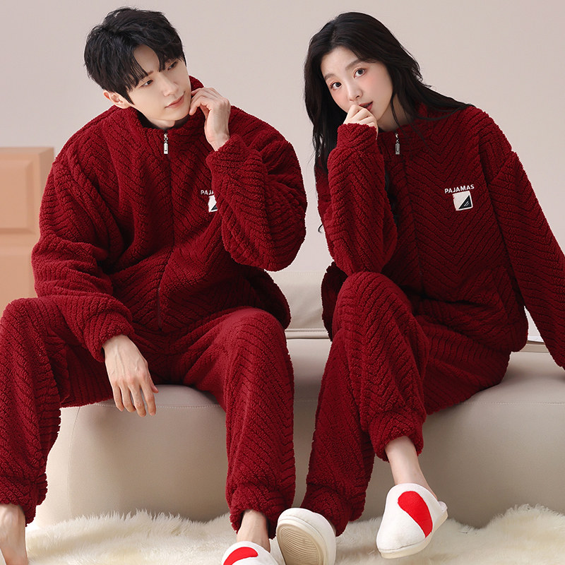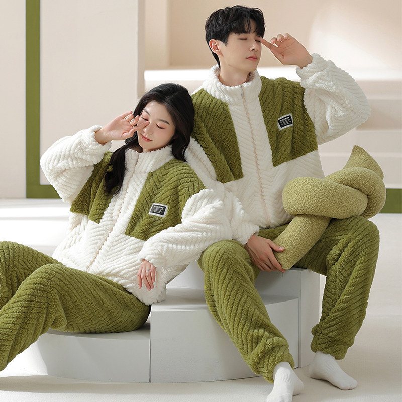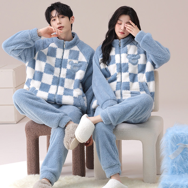 秋冬珊瑚绒睡衣情侣加绒加厚可外穿秋冬新男女家居服套装多规格