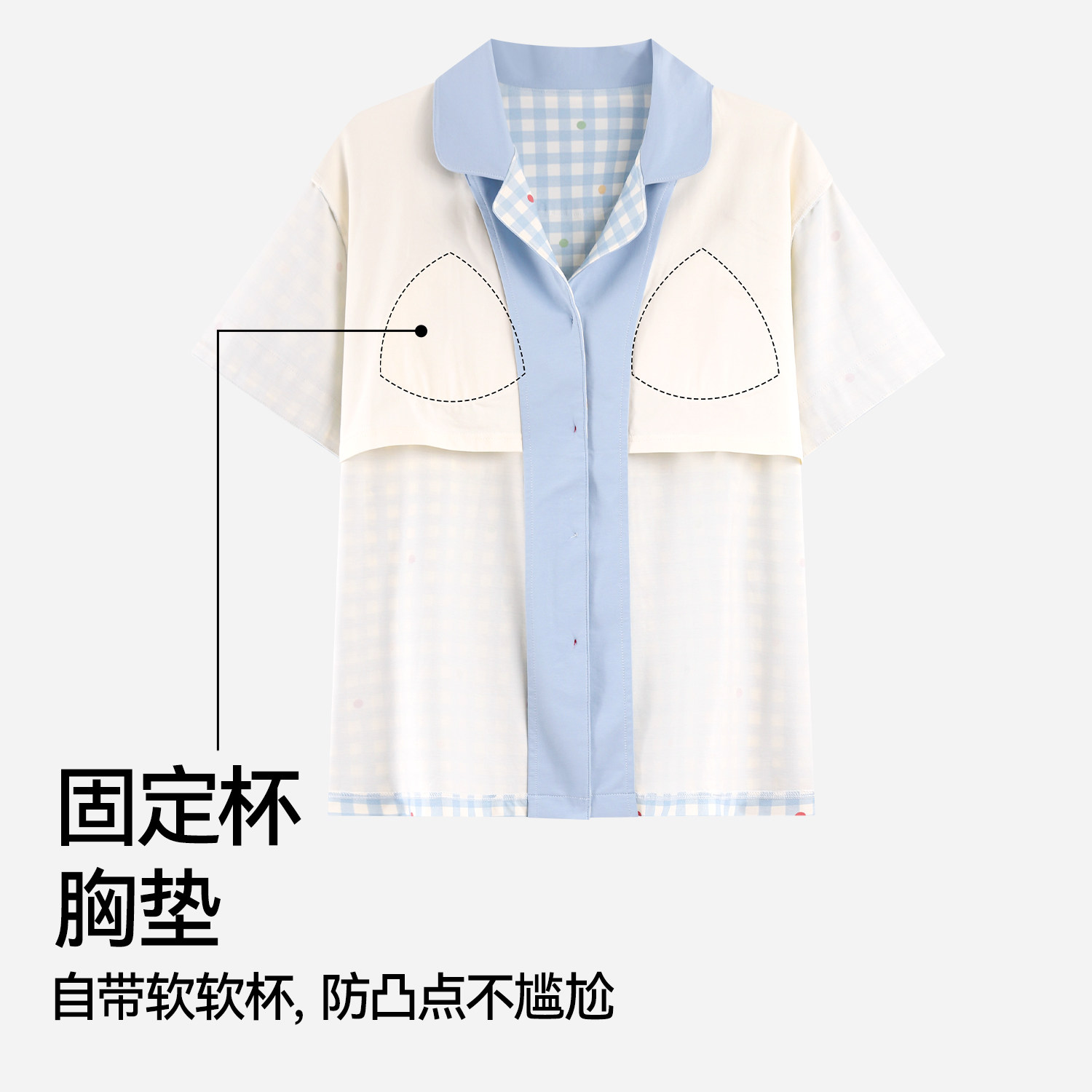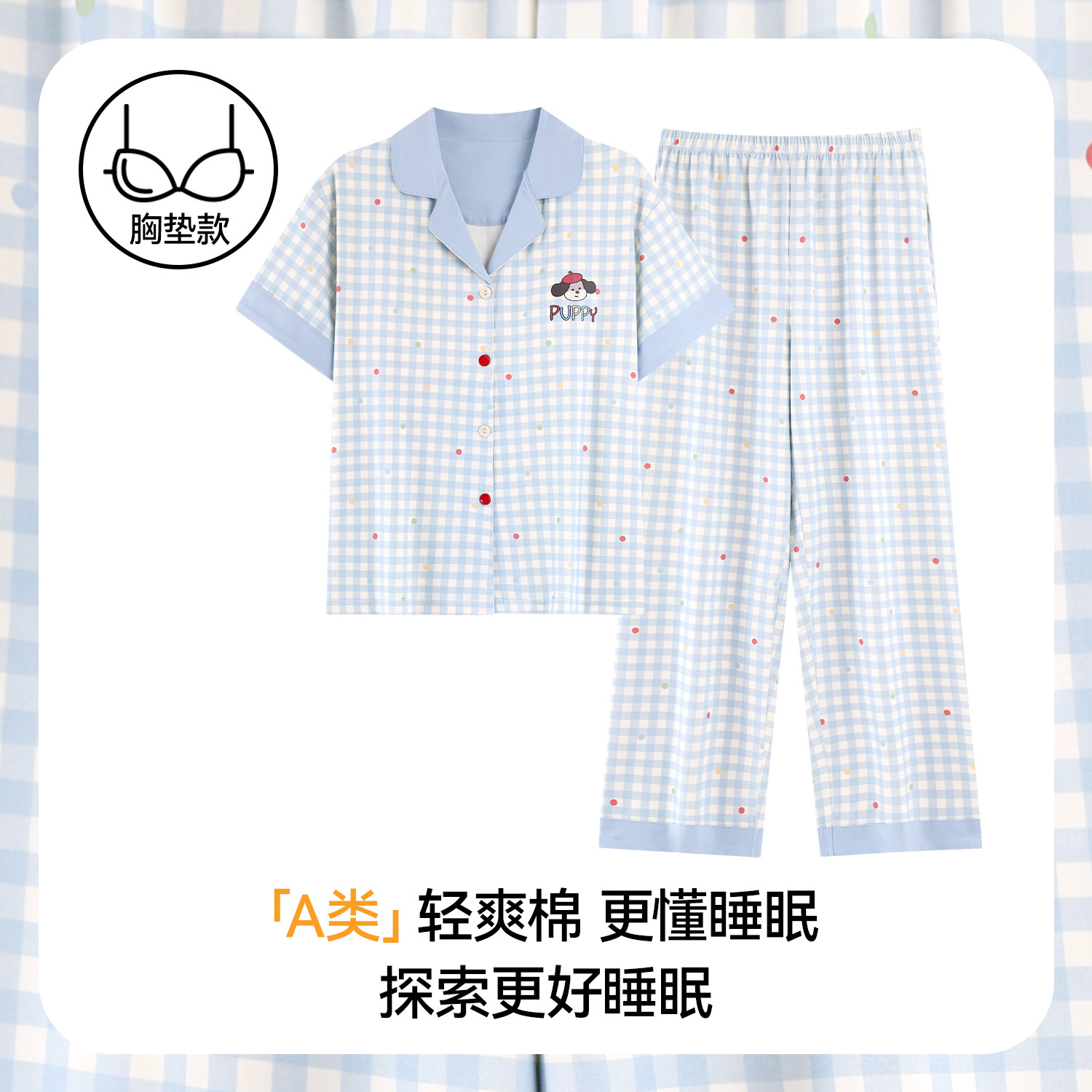 都市丽人睡衣女款纯棉甜美卡通家居服带胸垫夏季新款短袖长裤套装