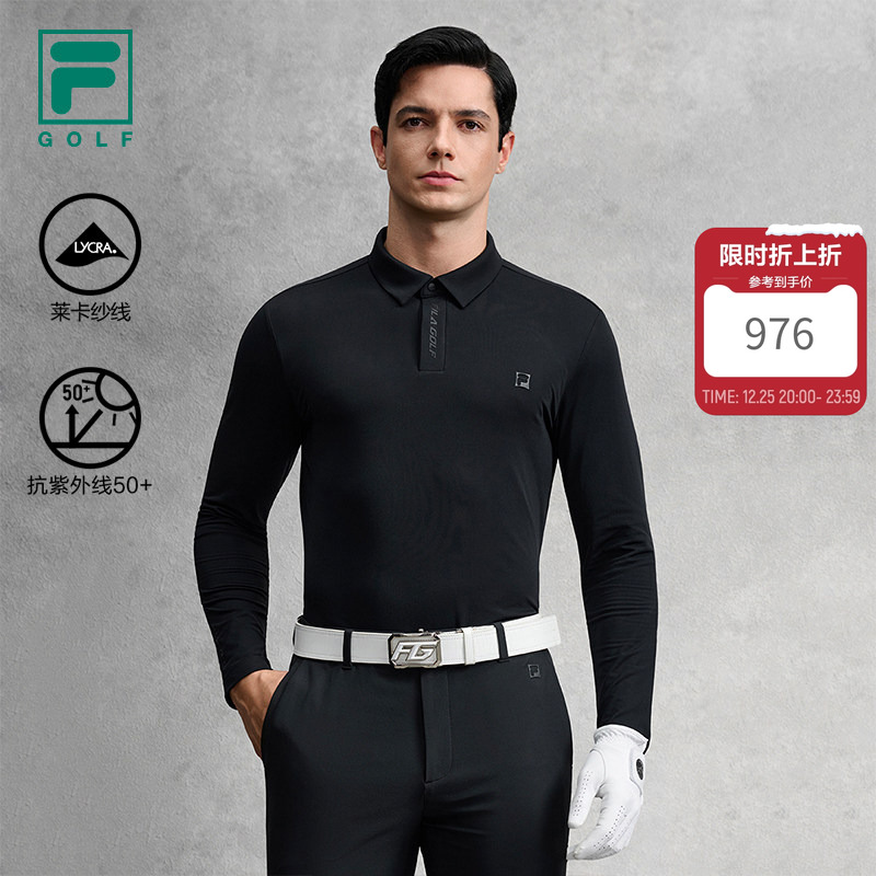 FILA 斐乐官方男子针织长袖POLO衫2025冬新款高尔夫运动修身上衣