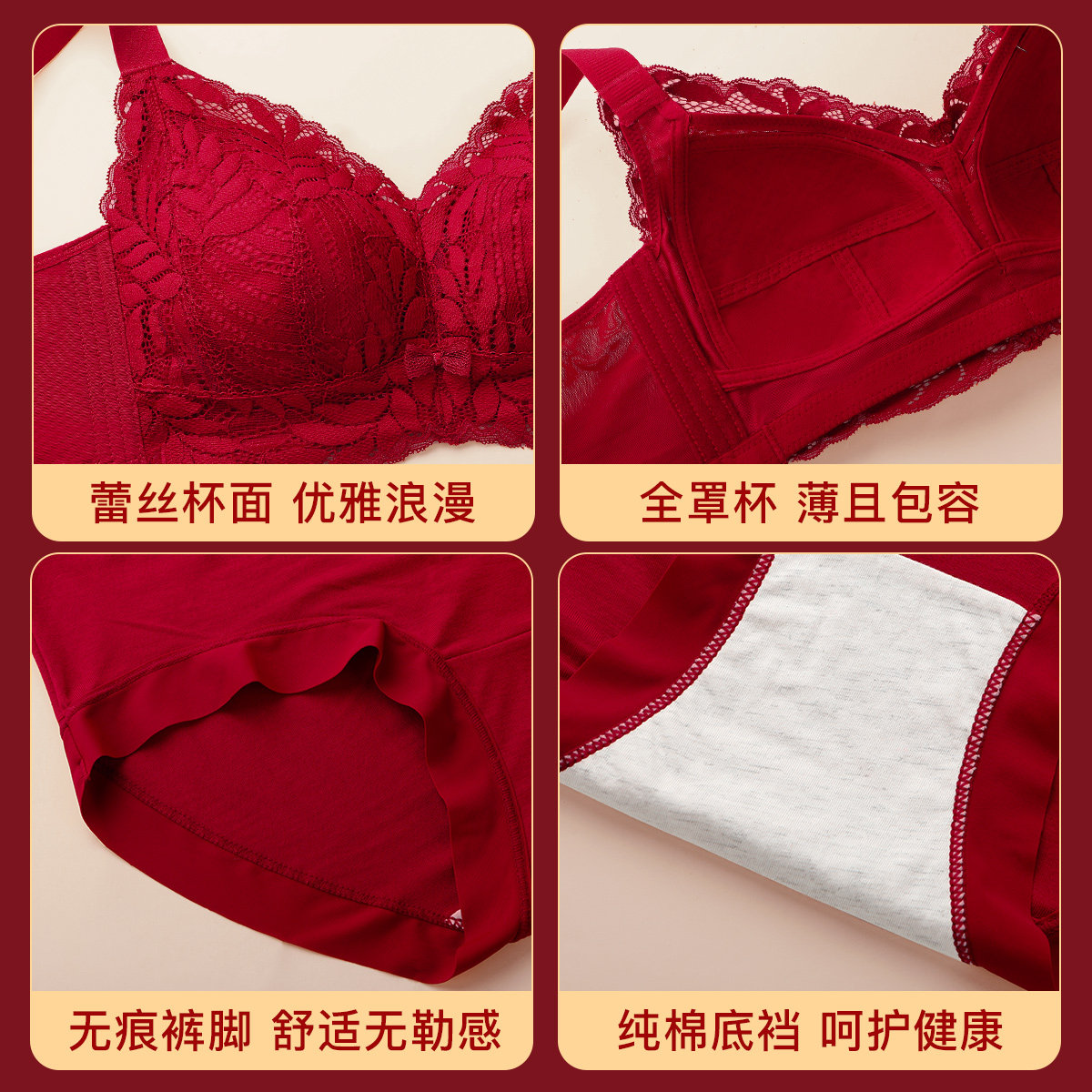 润微鸿运婚嫁本命年文胸套装大胸显小提拉防下垂收副乳红色内衣女
