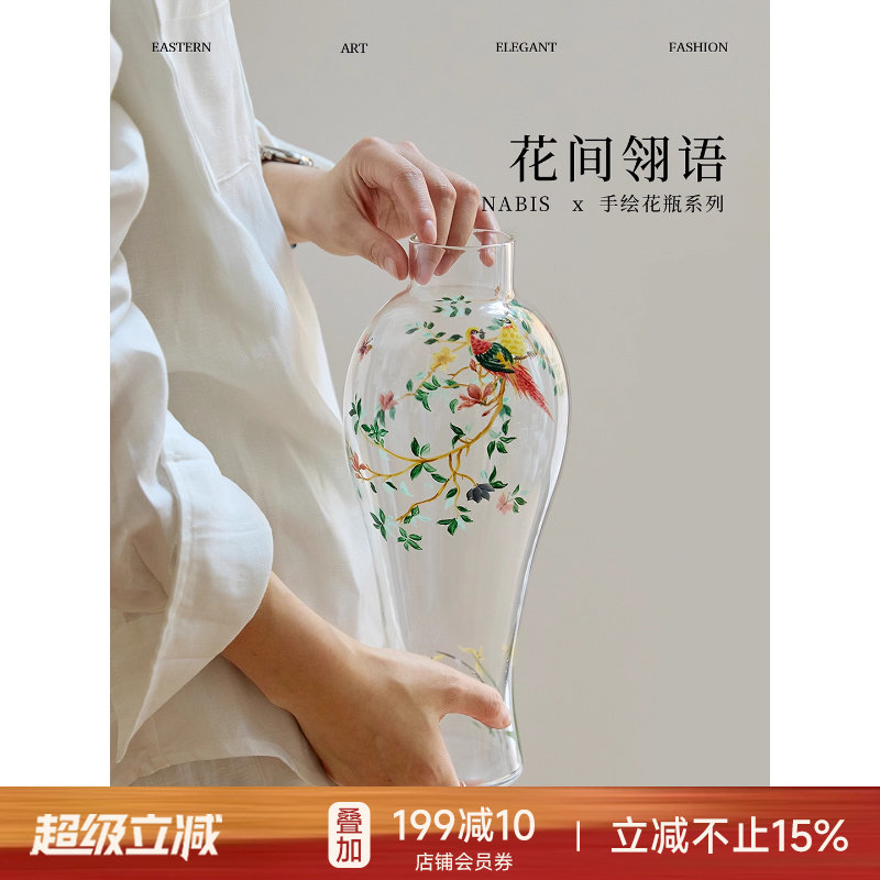 蜡笔派花间翎语花瓶新中式手绘收藏高级琉璃瓶乔迁新婚礼物摆件