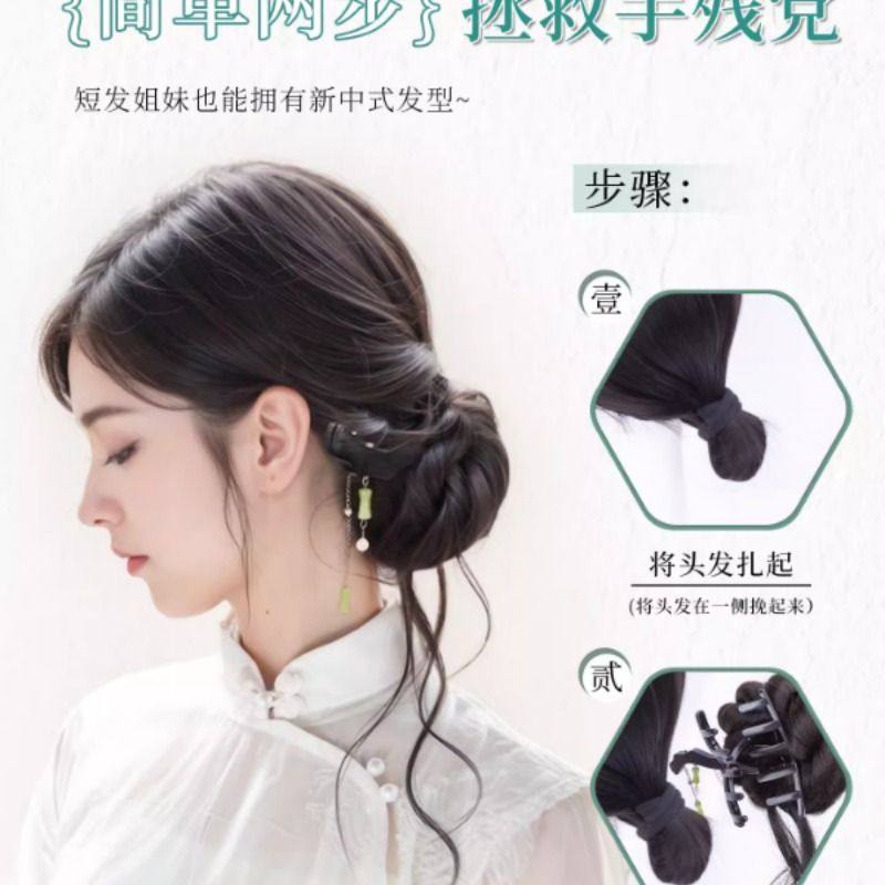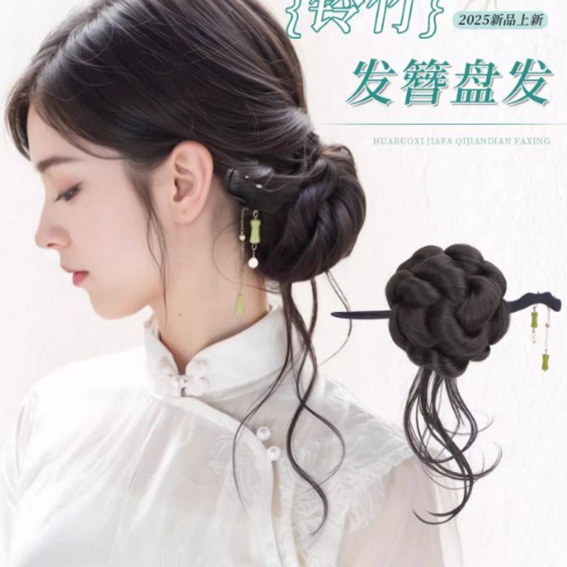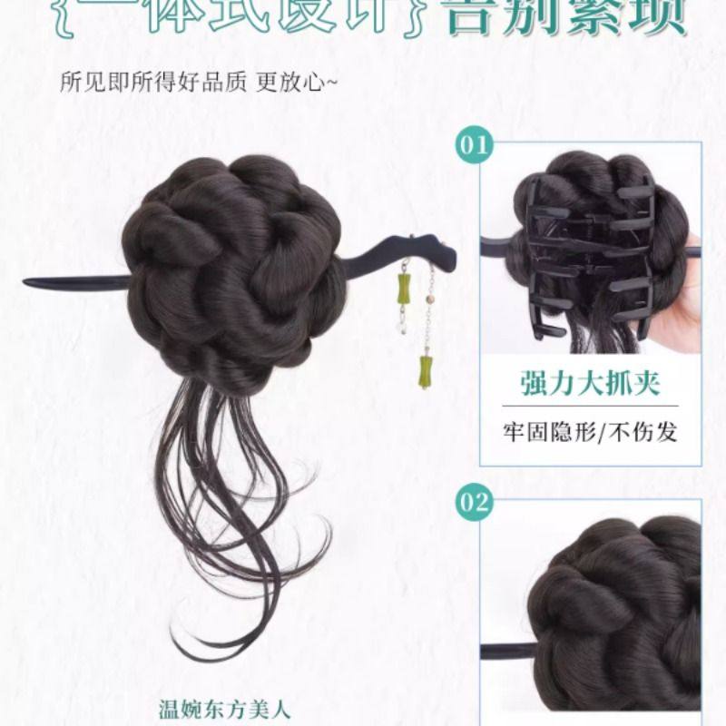 新中式假发抓夹女低扎古风汉服假发花苞头盘发神器丸子头假发发包
