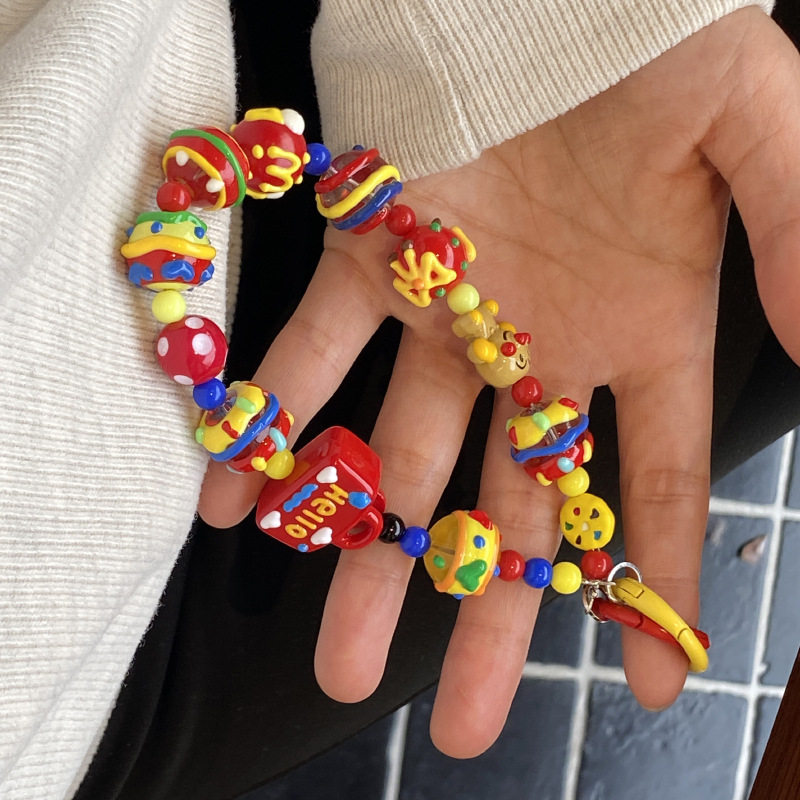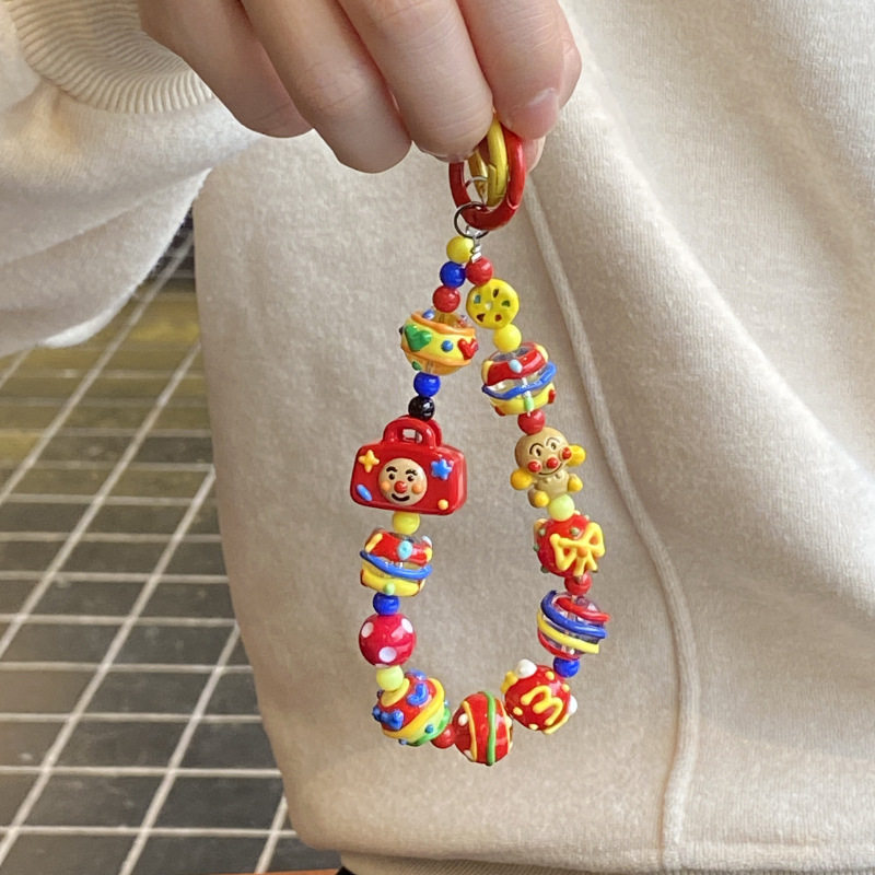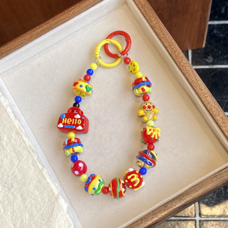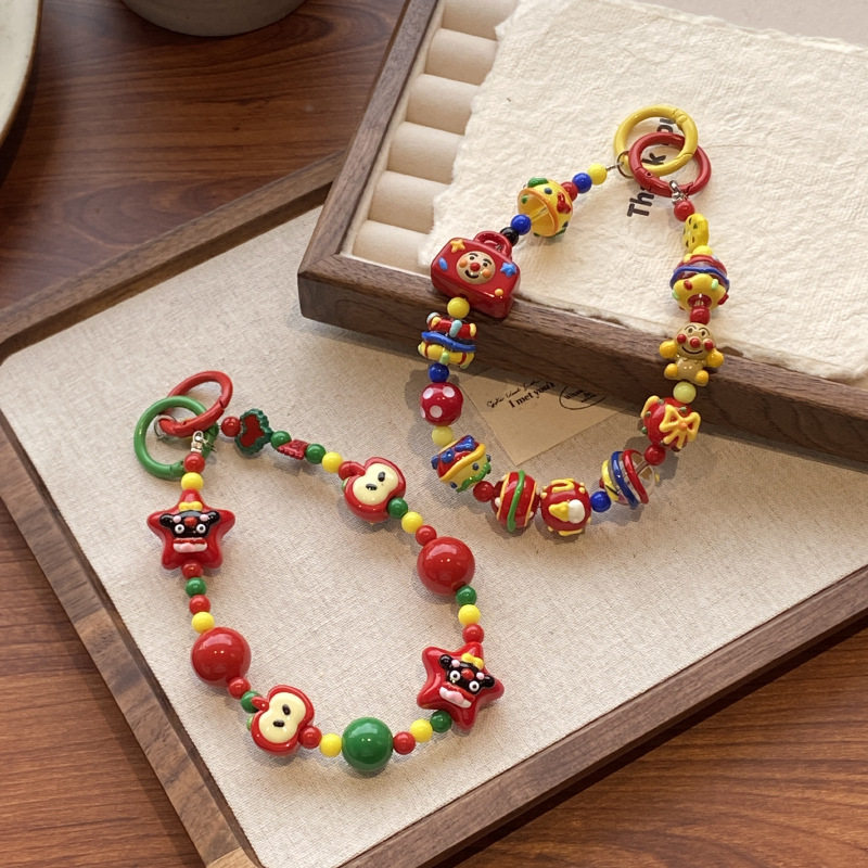自制红色果核手机链原创重工手绘串珠卡通企鹅超人包挂件挂饰