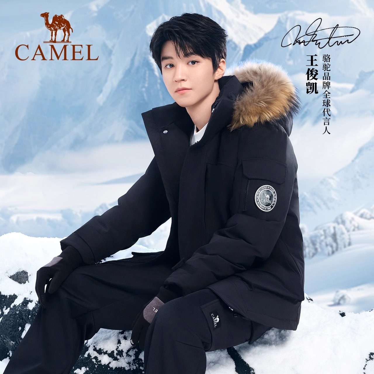 【王俊凯同款】骆驼羽绒服女款派克工装中长款冬季户外加厚外套男