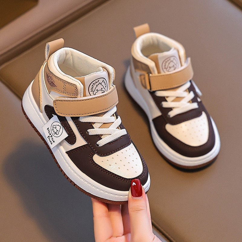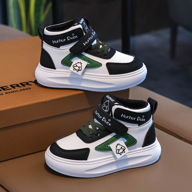小黄鸭童鞋春秋新款女童鞋子学生透气运动鞋男童皮面高帮儿童板鞋