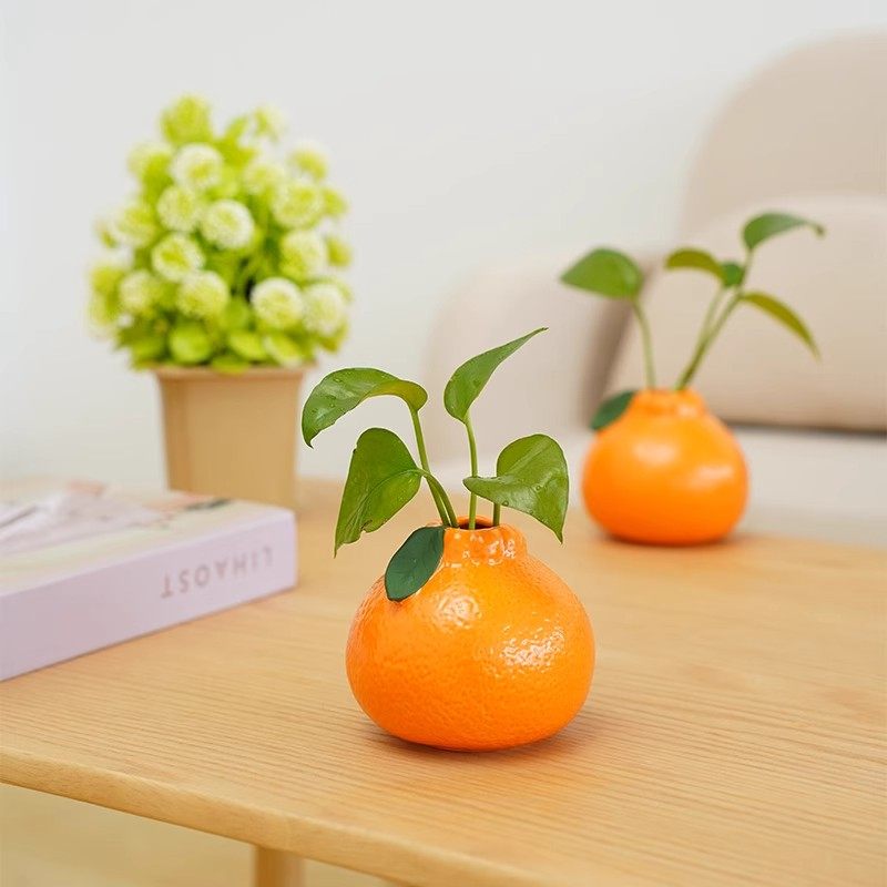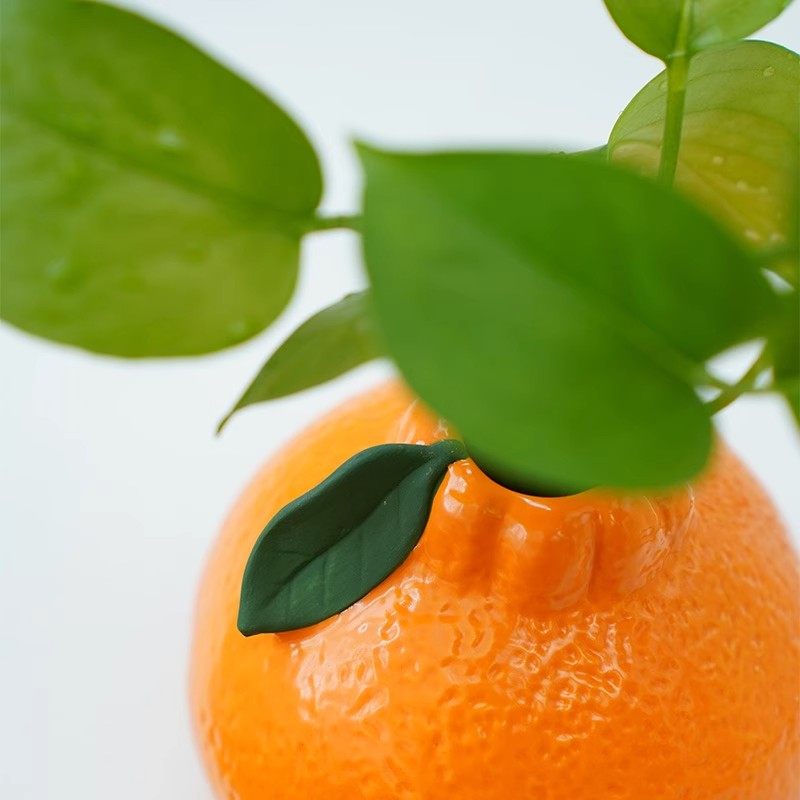 陶瓷仿真橘子花瓶绿箩水培花盆桌摆装饰摆件高颜值田园风桌面插花