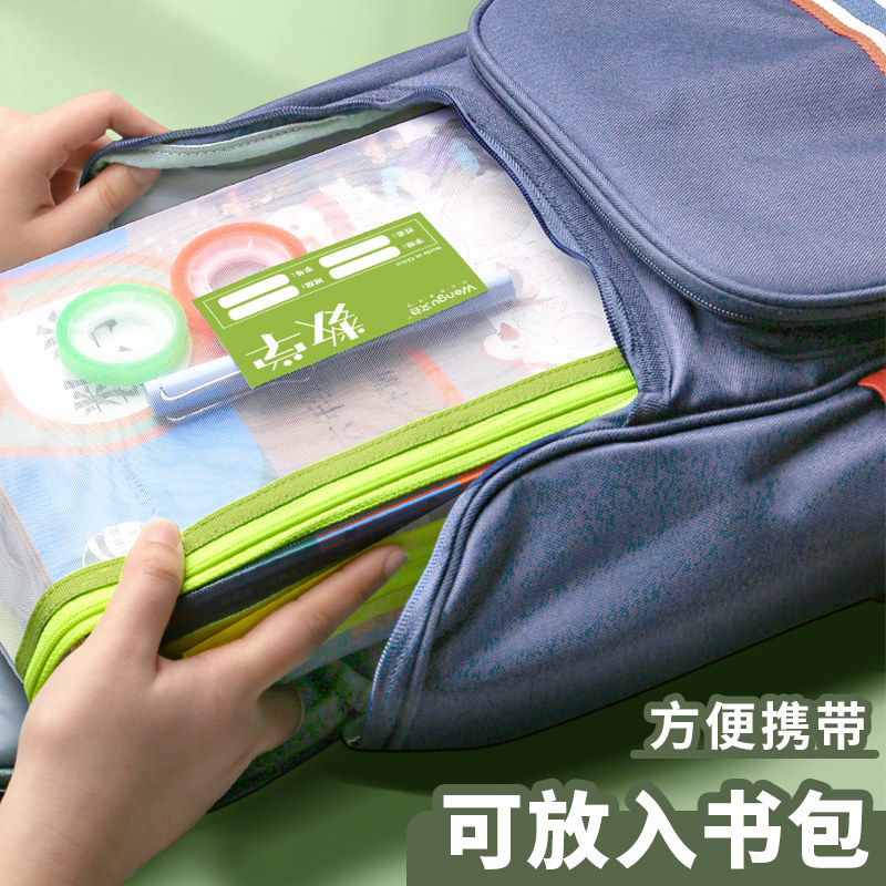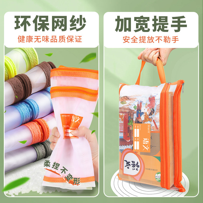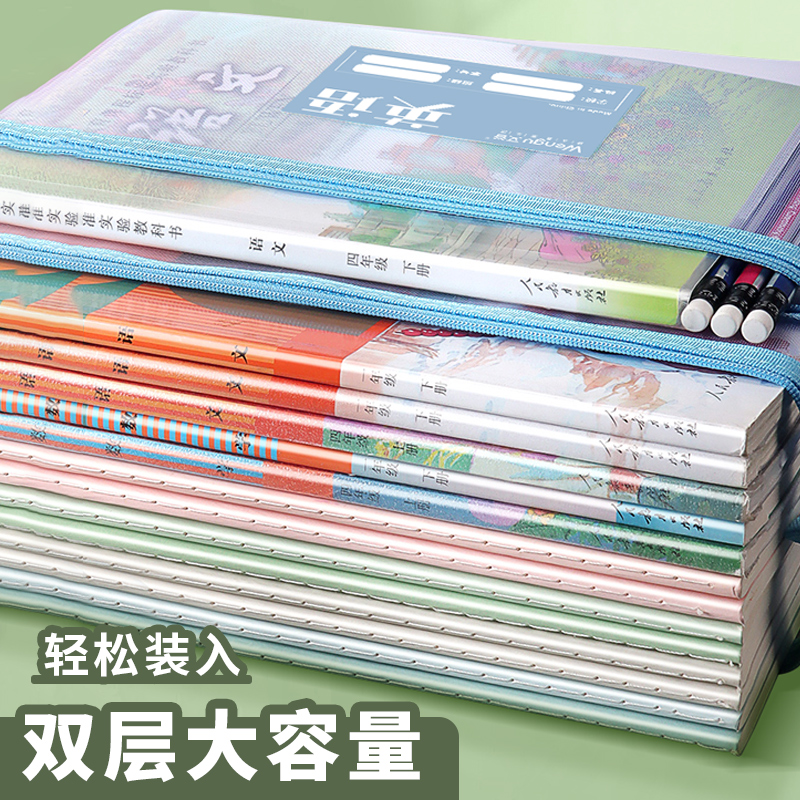 学科分类文件袋科目双层作业袋小学生手提透明网纱a4课本书收纳袋