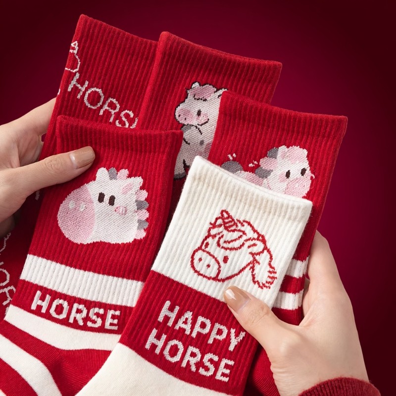本命年红袜子男女款袜子2026马年中筒袜韩系可爱新年秋冬属马长袜