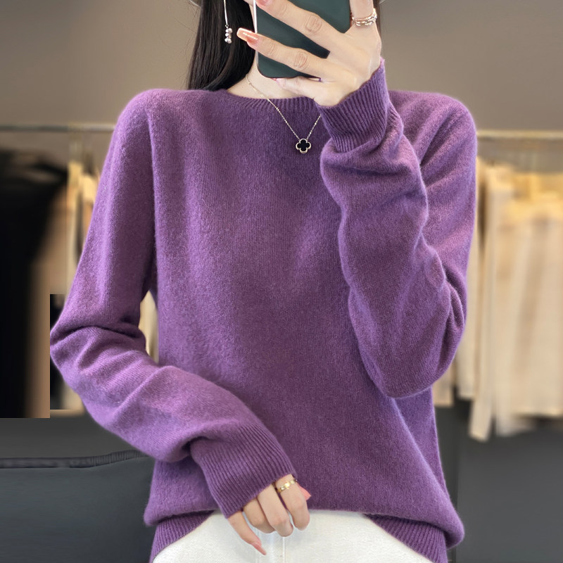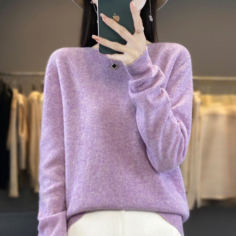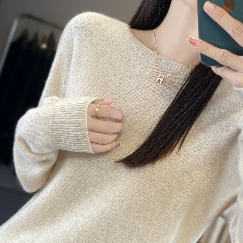 2025秋冬新款羊绒衫女低圆领宽松显瘦毛衣百搭100羊毛针织打底衫