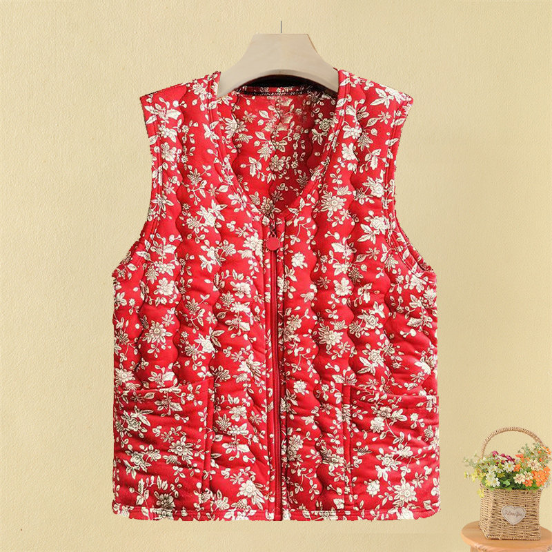 中老年人妈妈秋冬加棉马甲女款奶奶装马夹保暖坎肩老人背心开衫