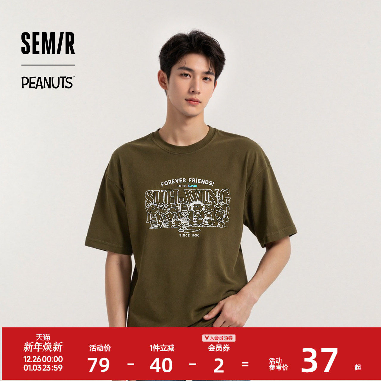 森马史努比系列短袖T恤男做旧复古情侣装纯棉秋季印花上衣中性款