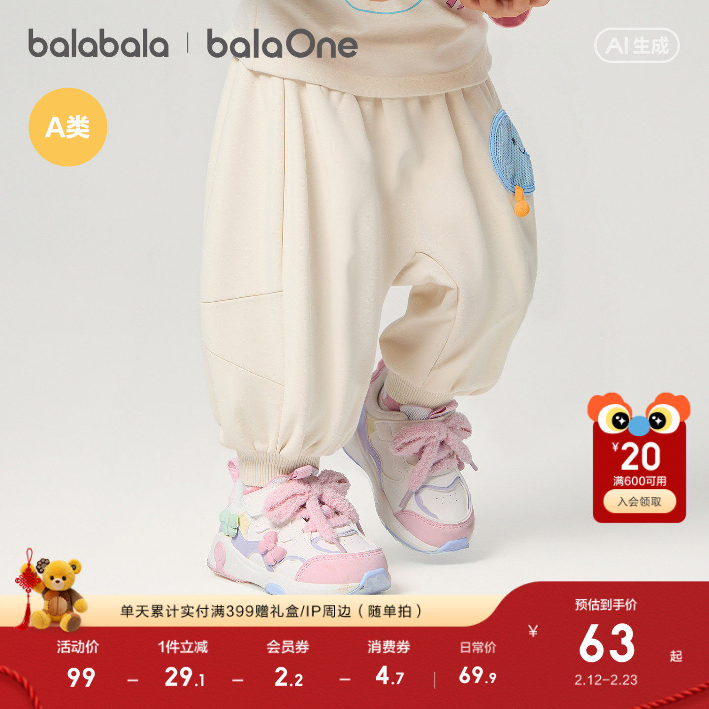 巴拉巴拉宝宝裤子婴儿裤子男女童长裤2026新款春装运动裤屁屁裤潮