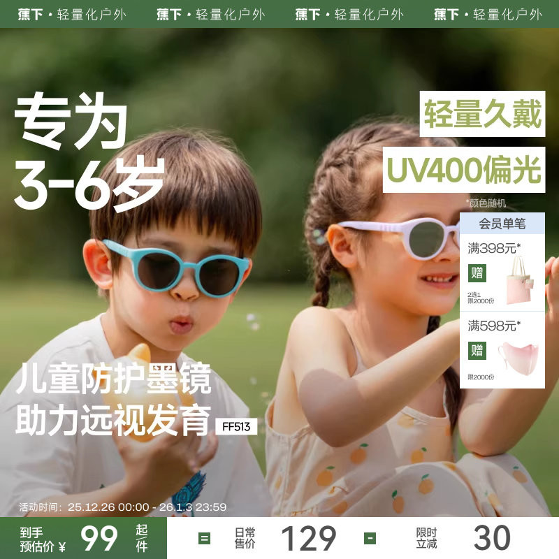 蕉下儿童运动墨镜男女童户外防紫外线便携可折叠防晒眼镜太阳镜