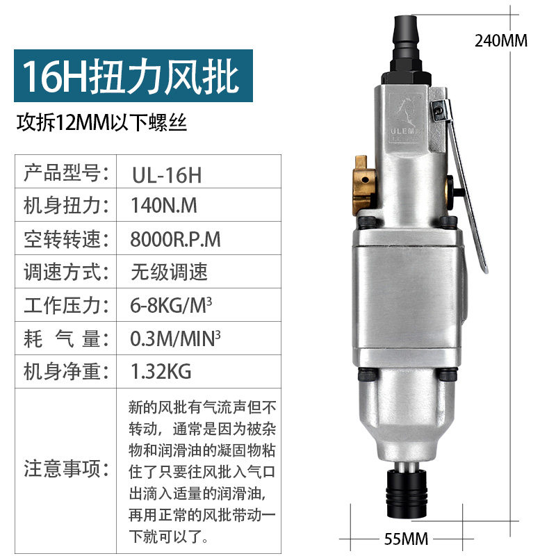 ULEMA气动螺丝刀16HK工业级风批起子螺丝批气批改锥改刀气动工具