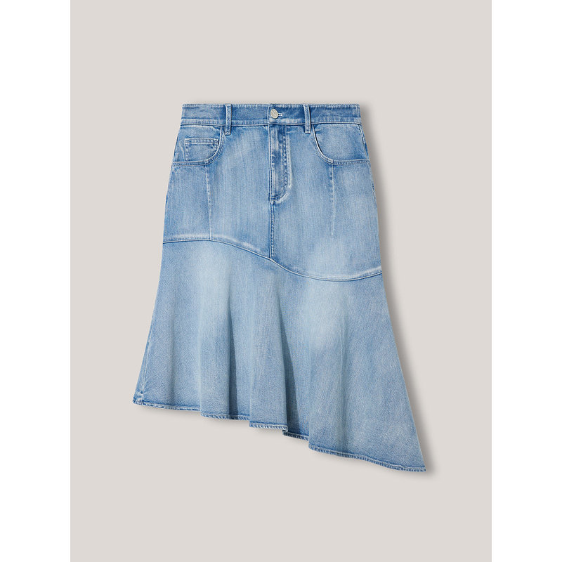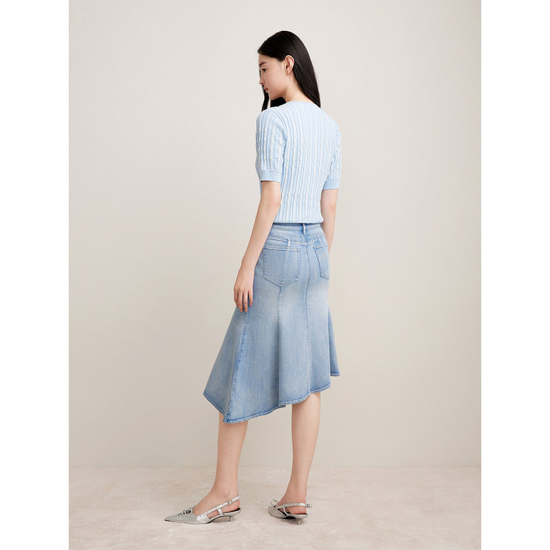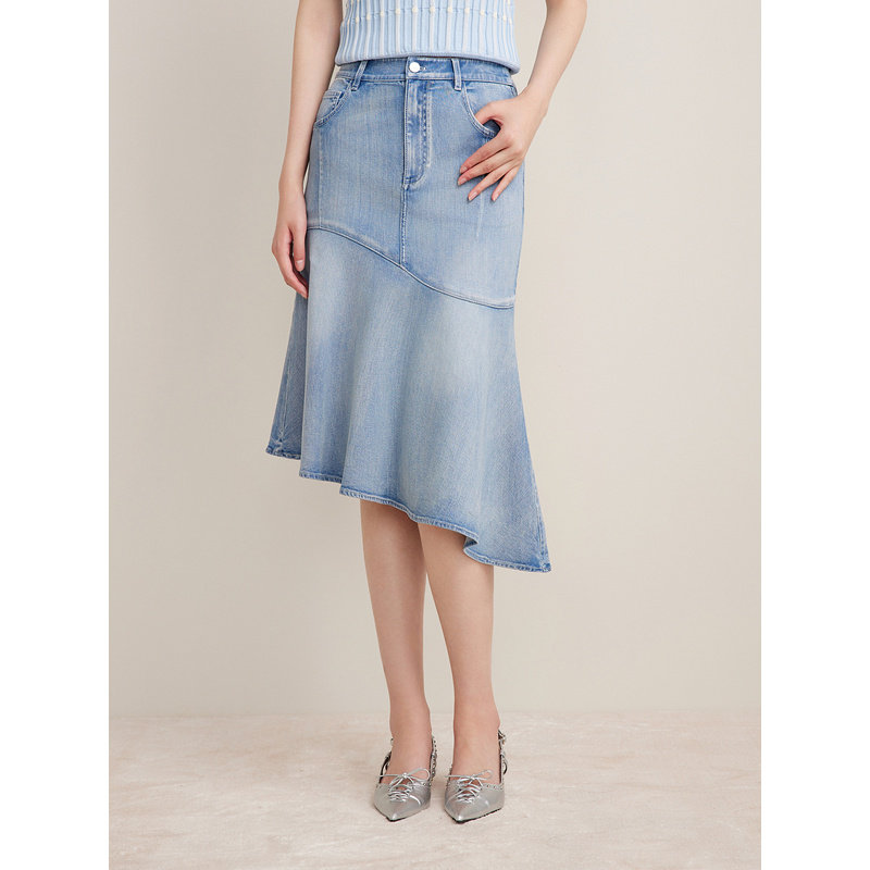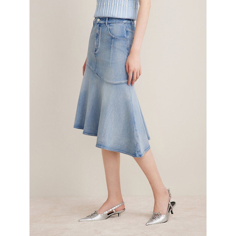 Goodland美地夏季法式不规则鱼尾下摆丹宁牛仔半身裙