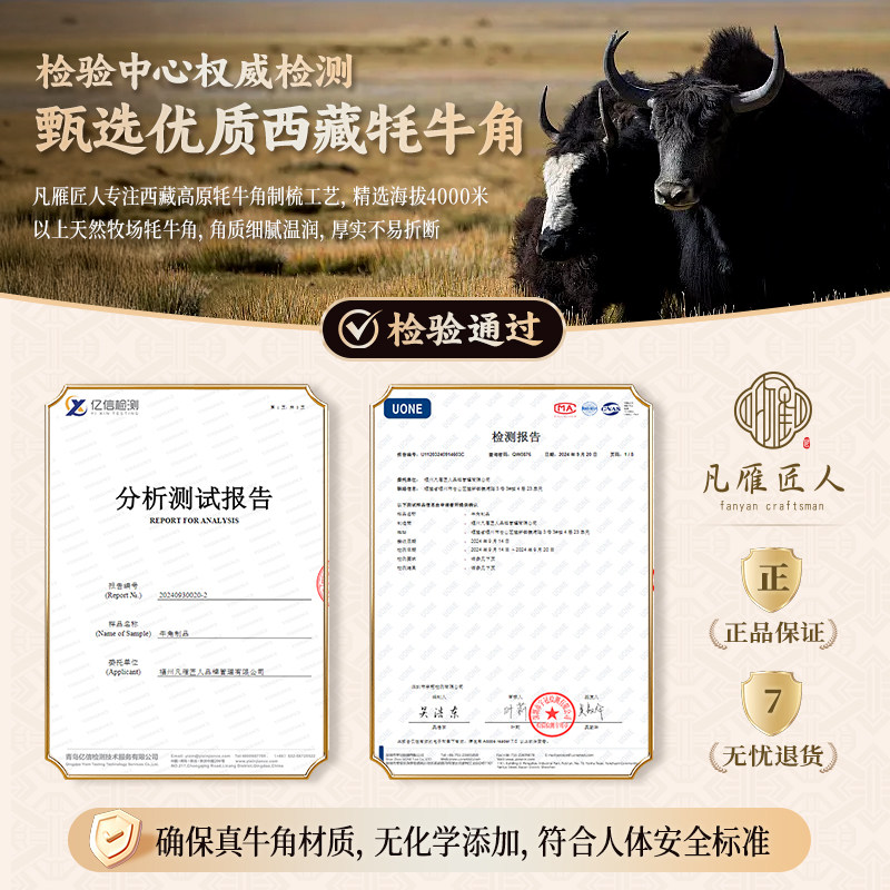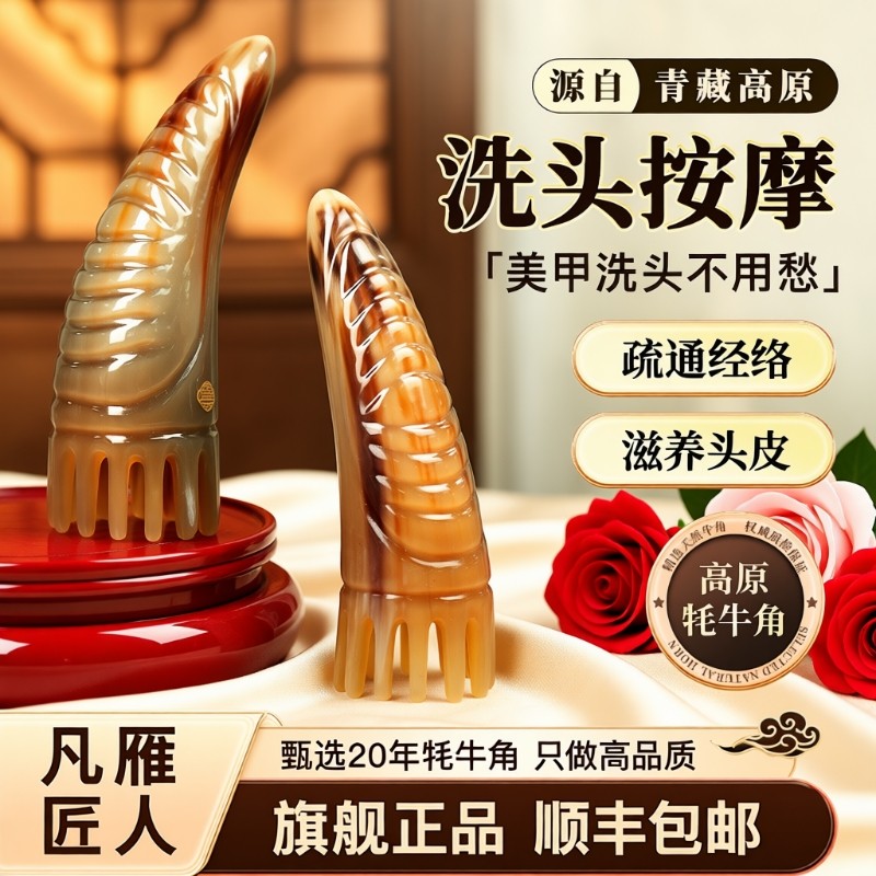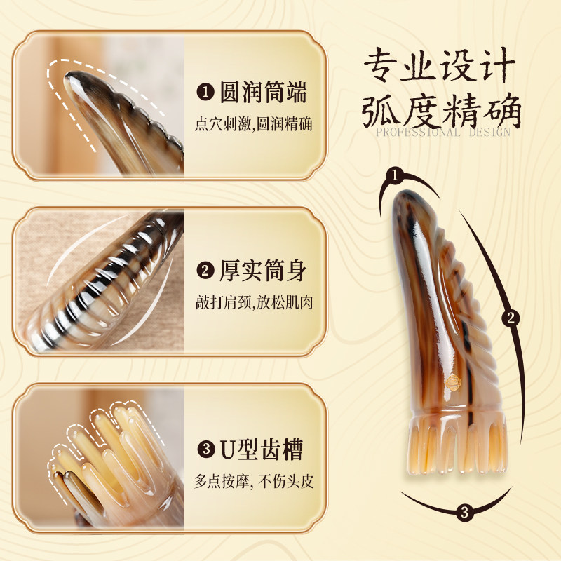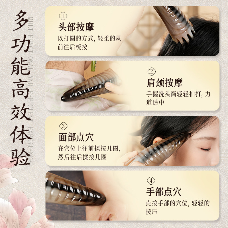 凡雁匠人牛角洗头筒按摩梳子圆筒正品头部经络头疗头皮刮痧按摩器